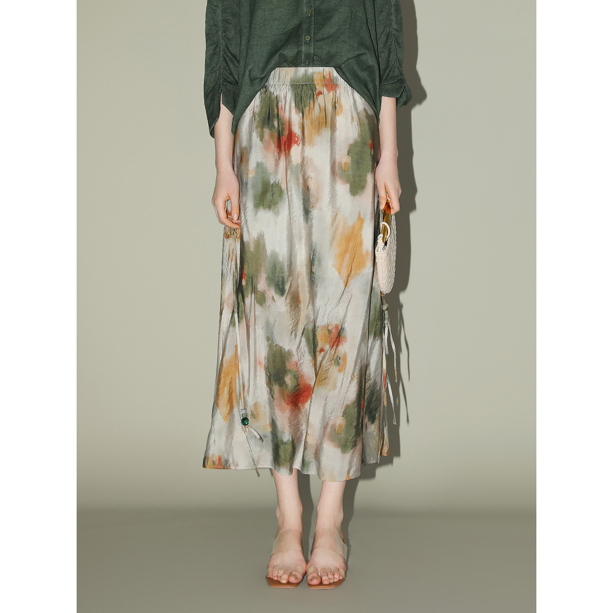 COCOBELLA晕染花卉印花半身裙串珠飘带大摆长裙HS7019 折扣季