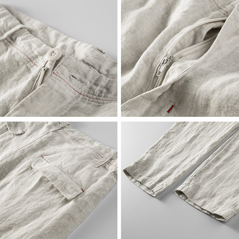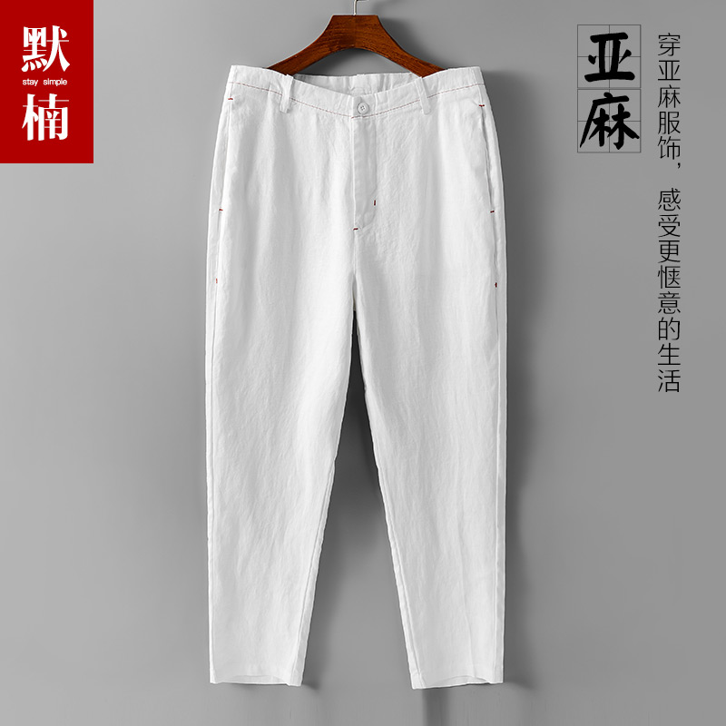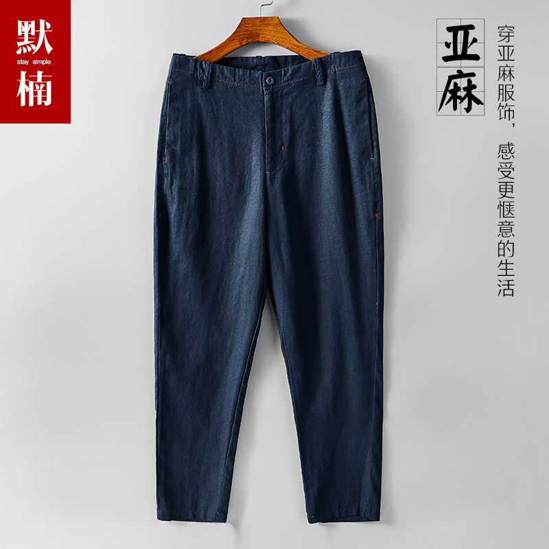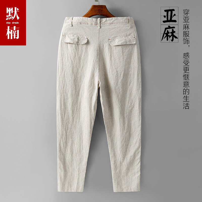 透气纯色棉麻休闲裤 中国风九分裤 子夏季 纯亚麻宽松直筒9分裤 男士