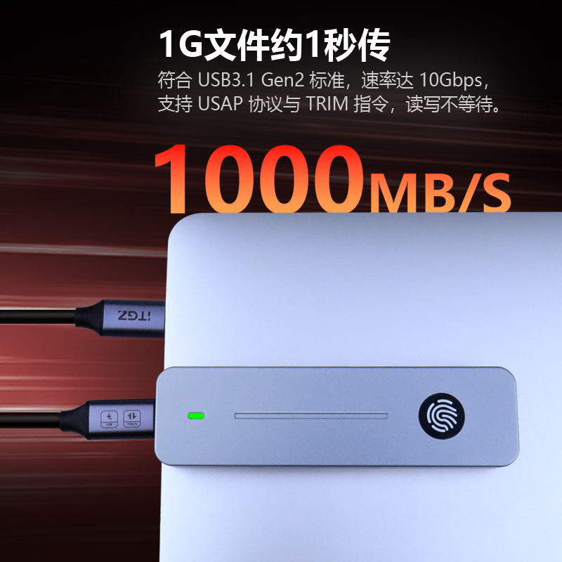 ITGZ sata双协议移动笔记本SSD外接盒 指纹加密M.2固态硬盘盒NVMe