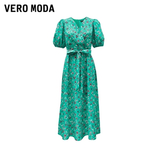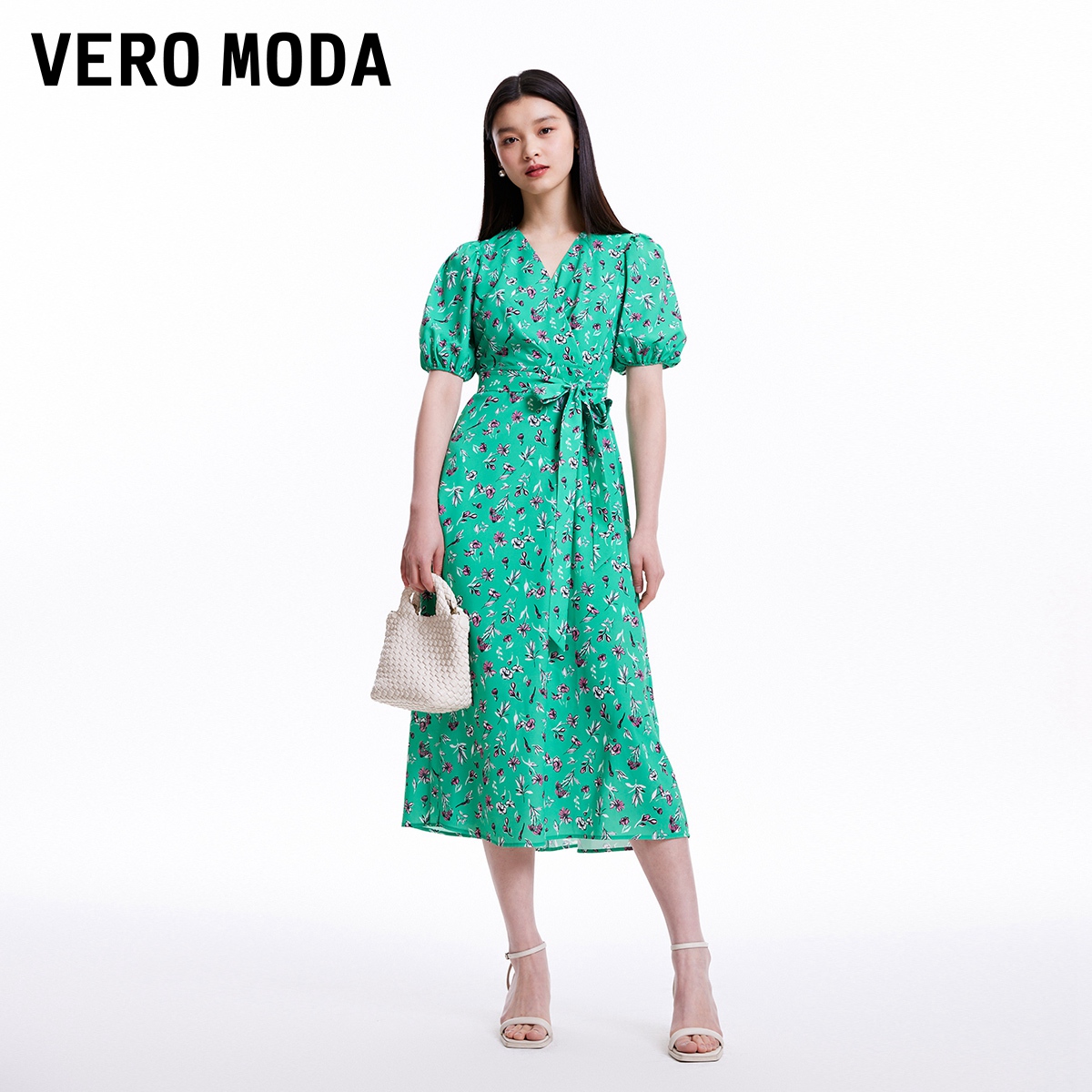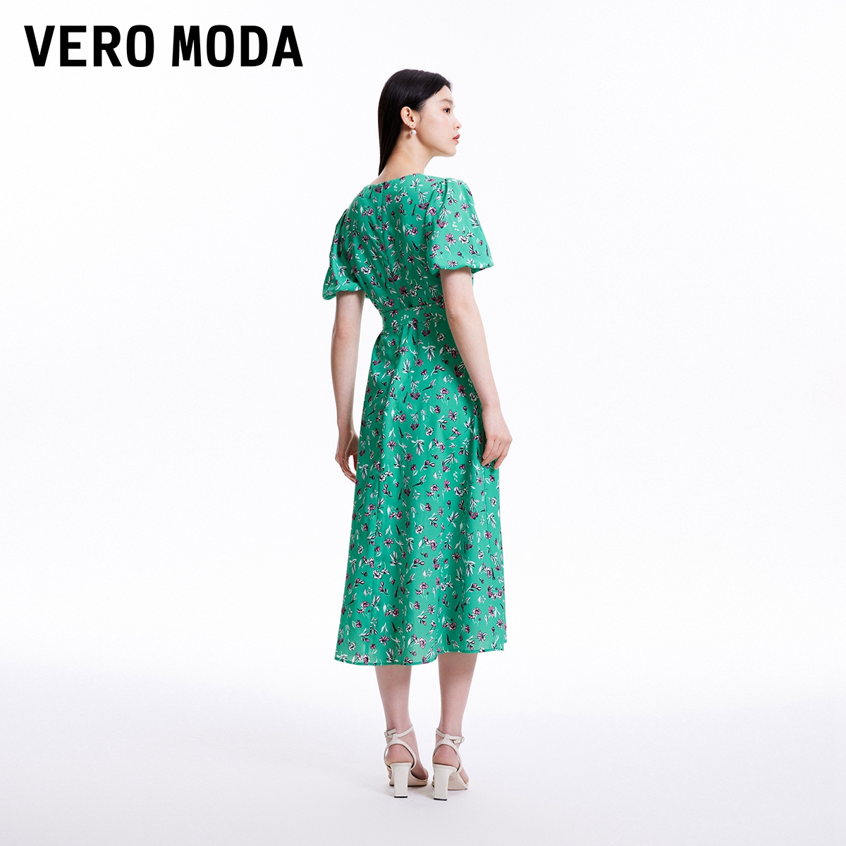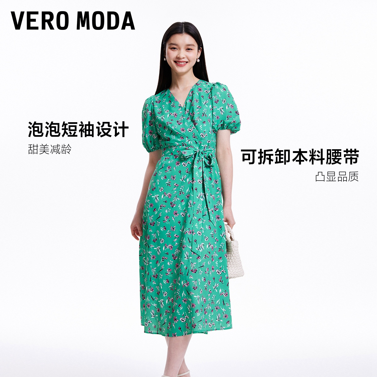 Vero 长裙浪漫度假简约 Moda奥莱连衣裙2024早秋V领印花泡泡短袖
