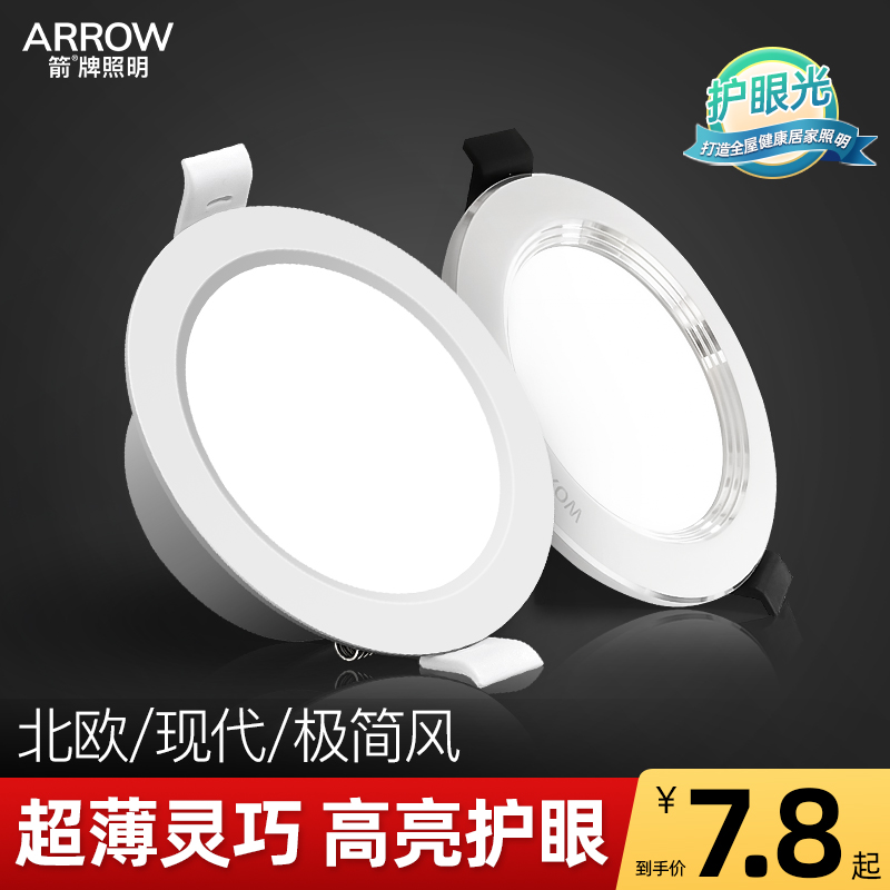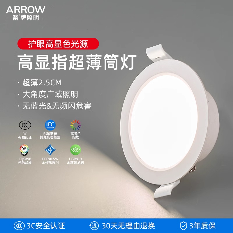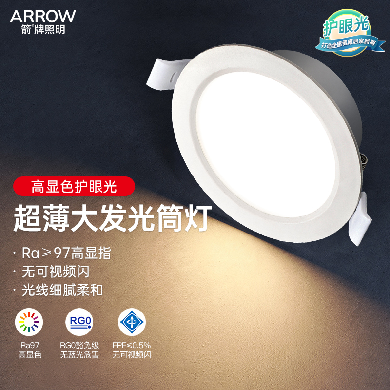 箭牌超薄筒灯嵌入式 全光谱护眼客厅走廊家用led高亮防眩无主灯具