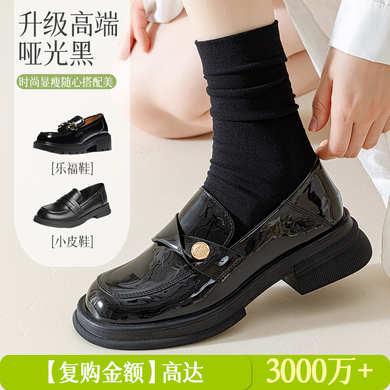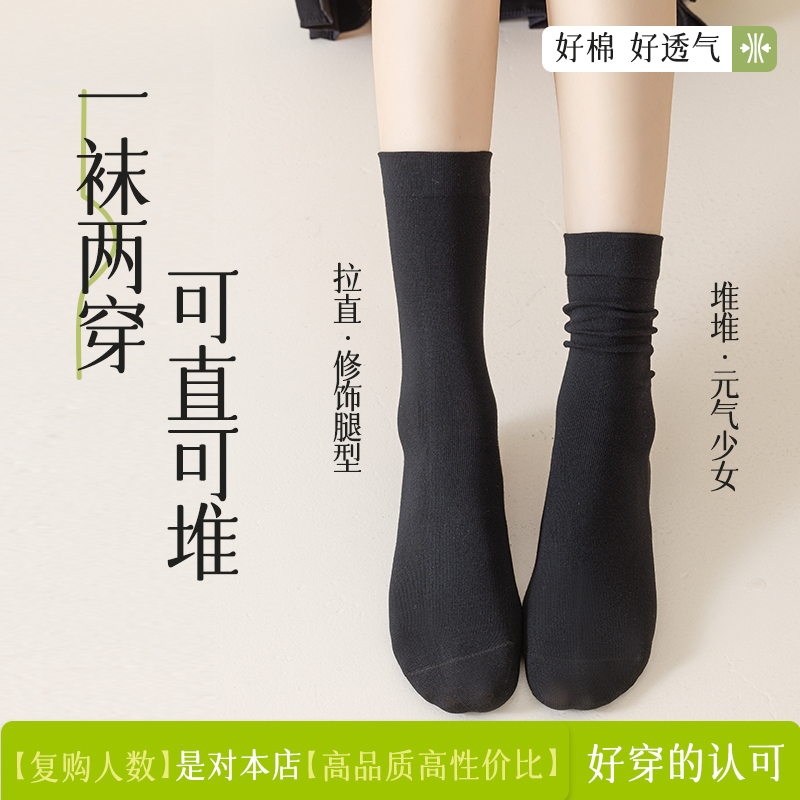 秋冬无骨袜 乐福鞋 黑色袜子女堆堆袜春秋中筒纯棉2025新款 配小皮鞋