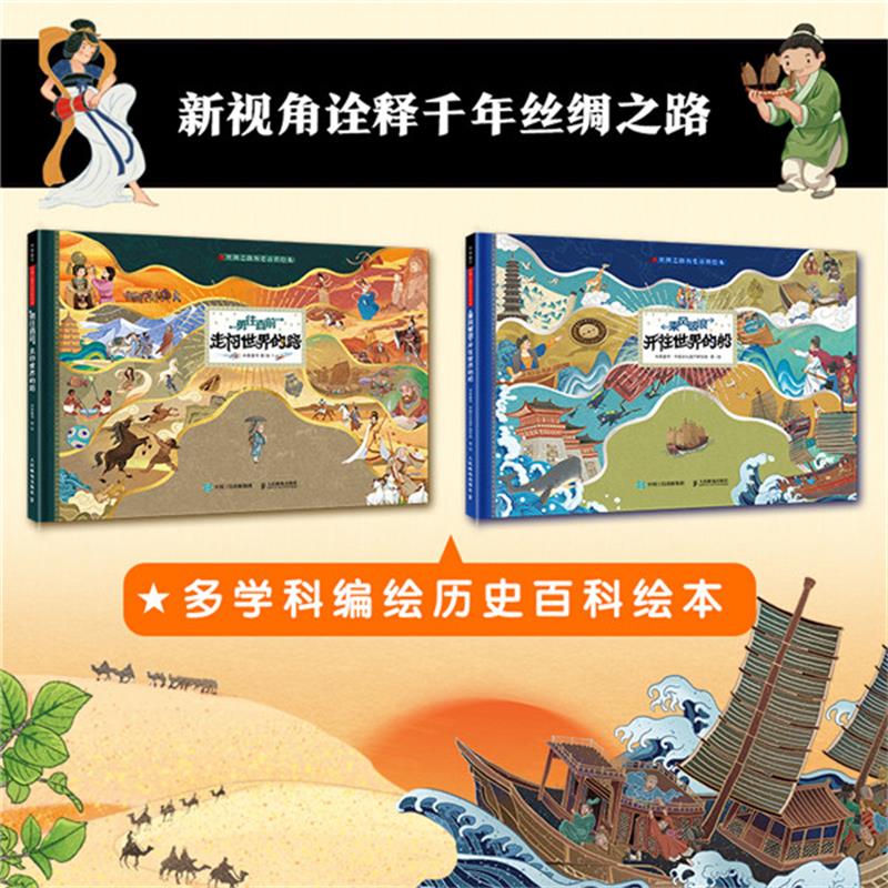 社米莱童书历史商贸考古少儿百科世界文化遗产 船人民邮电出版 丝绸之路历史百科绘本全2册勇往直前走向世界 路乘风破浪开往世界
