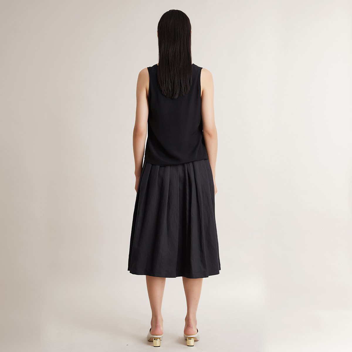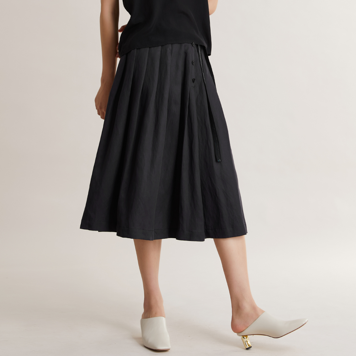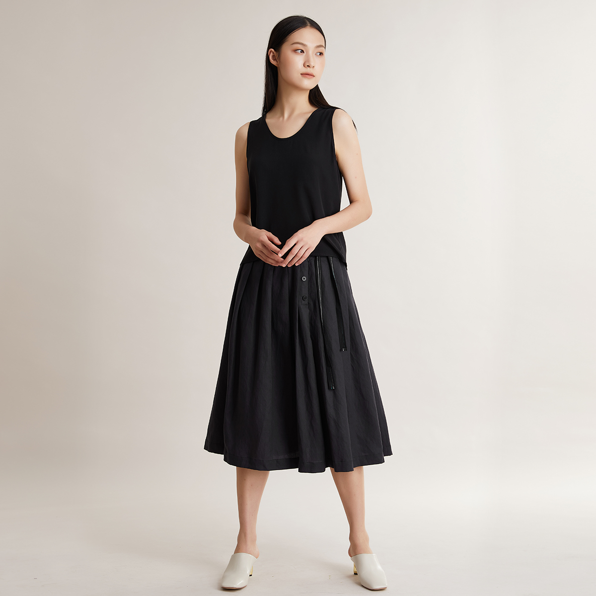 Pukka蒲牌百褶半裙女2022春季 宽松休闲原创设计收腰显瘦裙子 新款