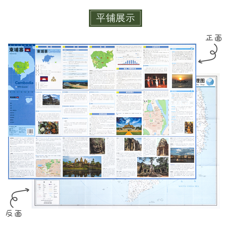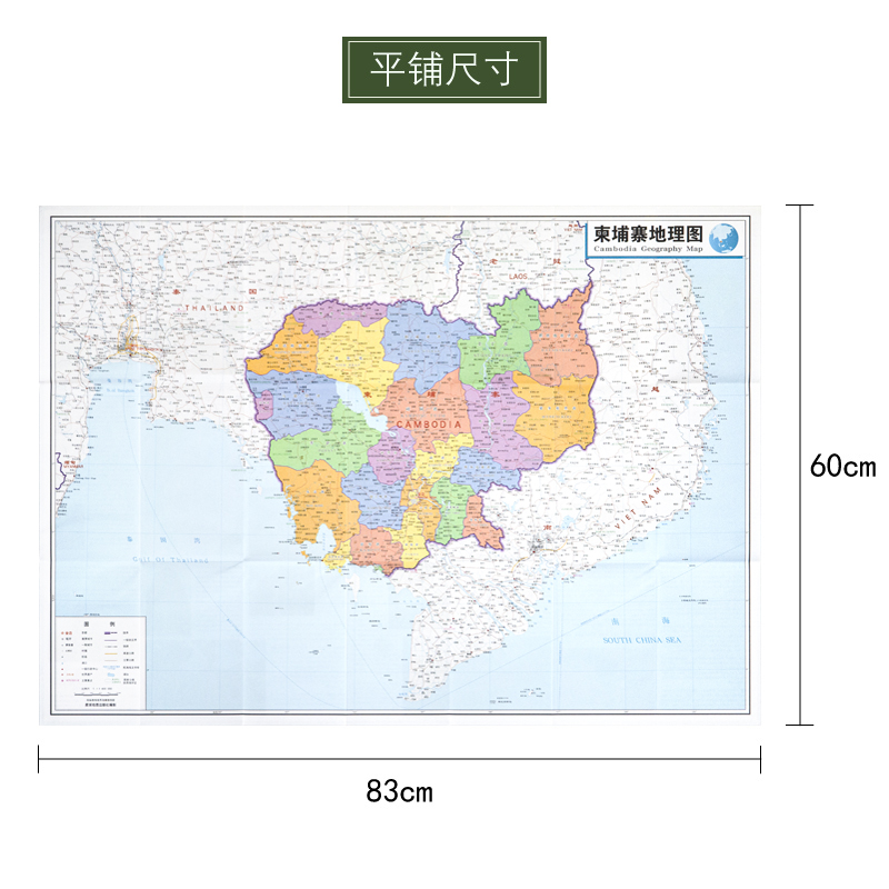 约84 政区图 折叠便携袋装 双面覆膜防水 60cm 城市景点 人文历史 地理概况 柬埔寨 世界分国地理图