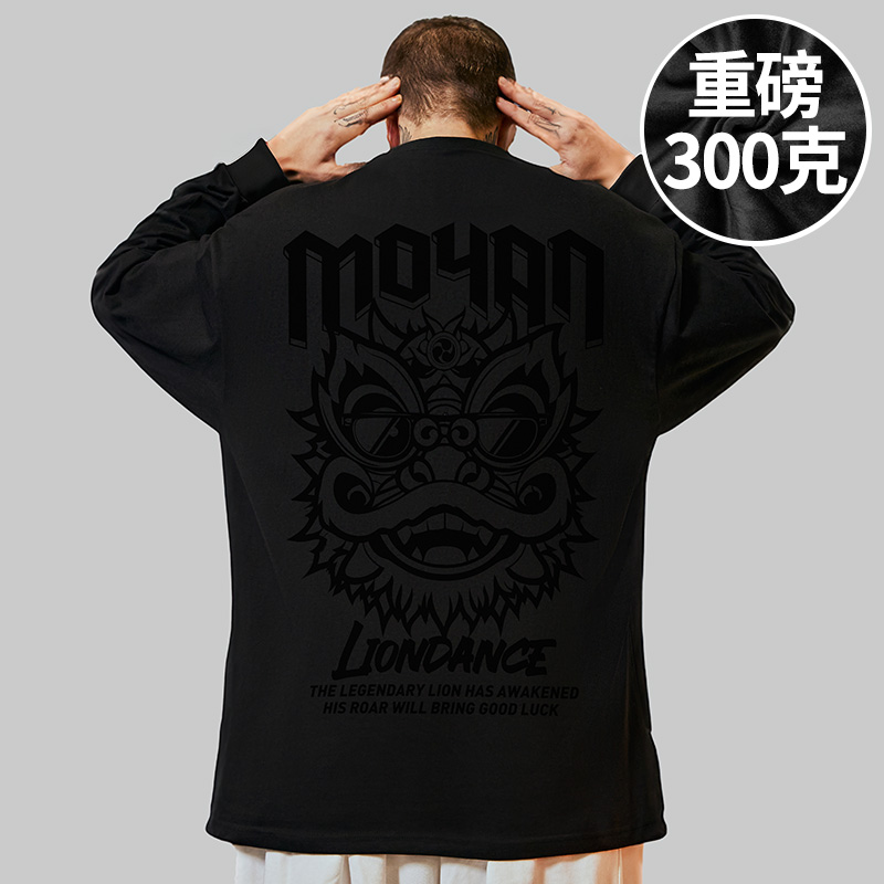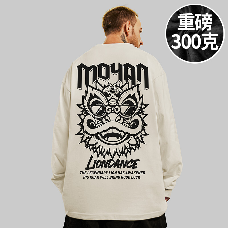 男装 2025新款 加肥加大码 潮牌宽松春季 国潮醒狮t恤胖子男潮ins长袖