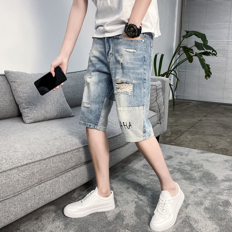 宽松拼接撞色束脚运动休闲复古美式 速写男装 牛仔裤 新款 街头潮 秋季
