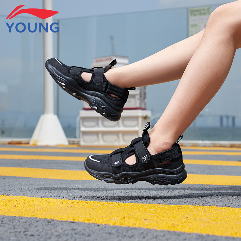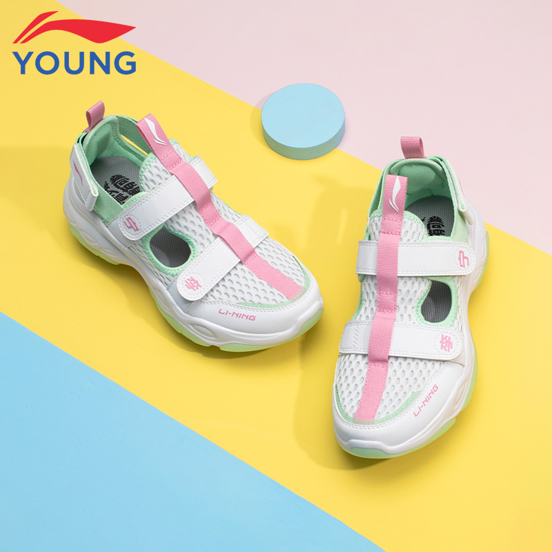 男女大童透气网面青少年运动休闲鞋 李宁童鞋 新款 夏季 儿童包头凉鞋