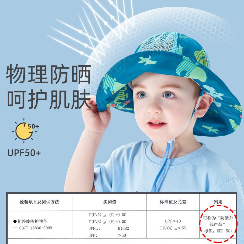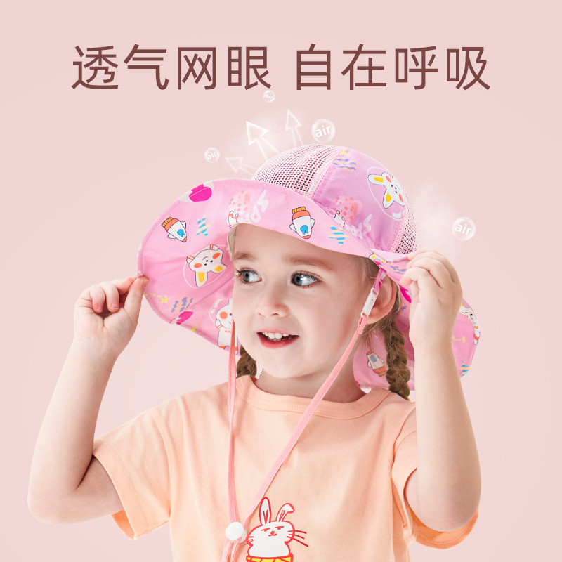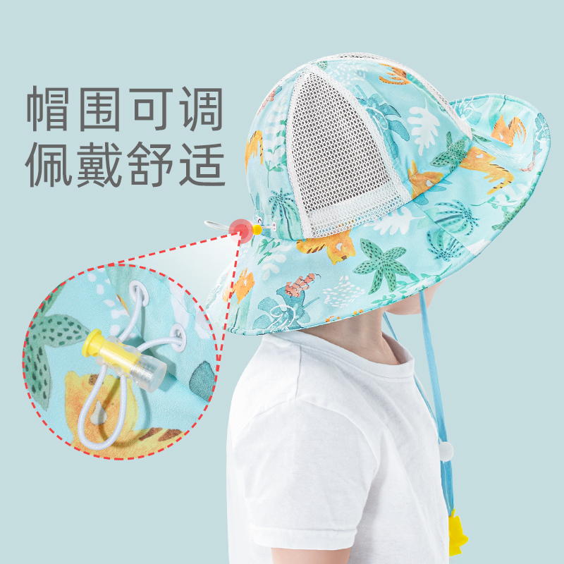 儿童帽子网眼遮阳防晒帽宝宝夏季 男女童帽子渔夫帽透气太阳帽 薄款