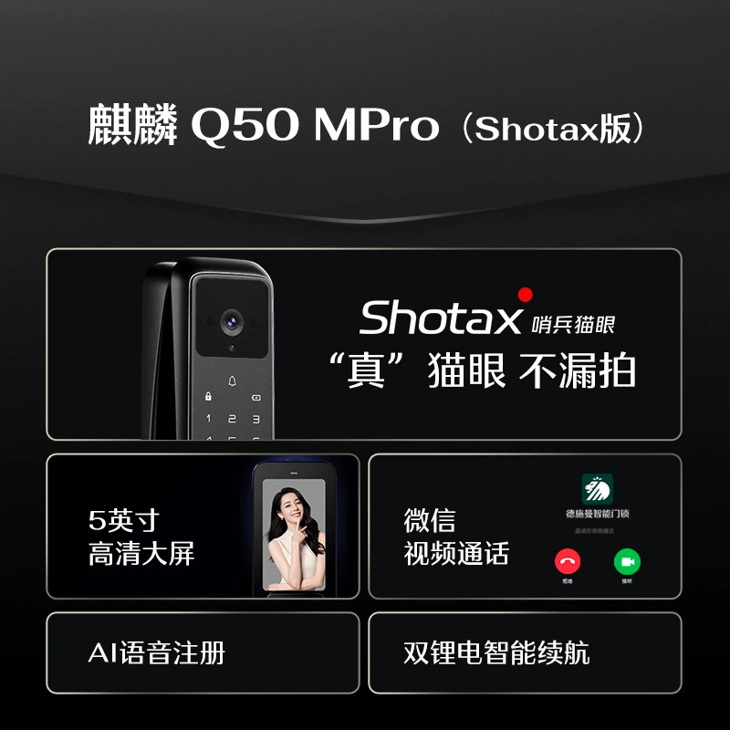 德施曼智能门锁大圣Q50Mpro指纹锁大屏猫眼龙霆大电机升级智能锁