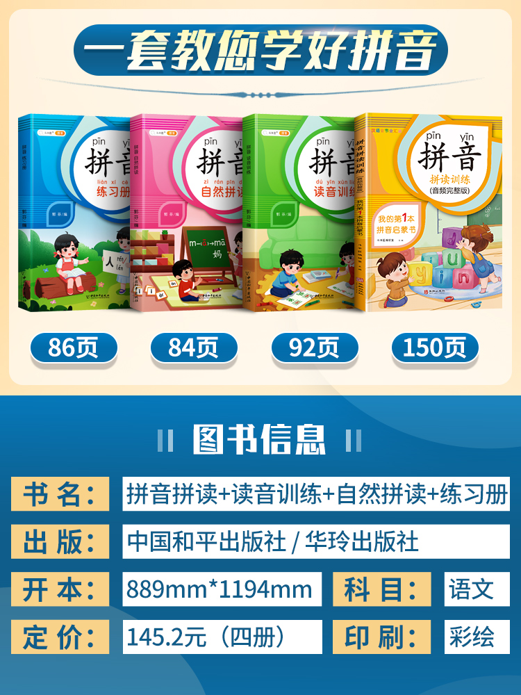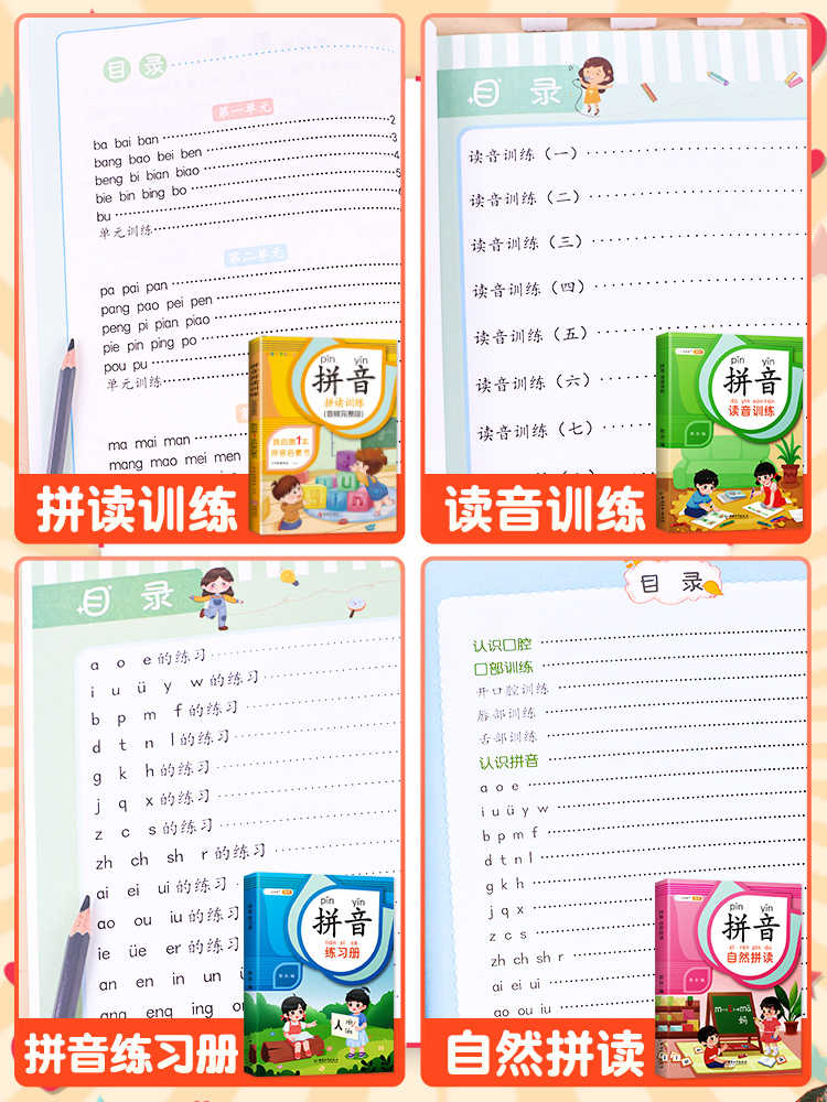 斗半匠拼音拼读训练儿童识字发音拼音练习册拼音教材幼小衔接教材汉字神器幼儿园大班学前班人教版 早教启蒙书拼音完整音频识字大王