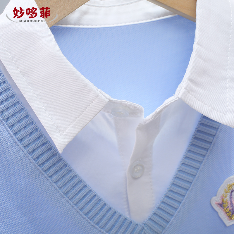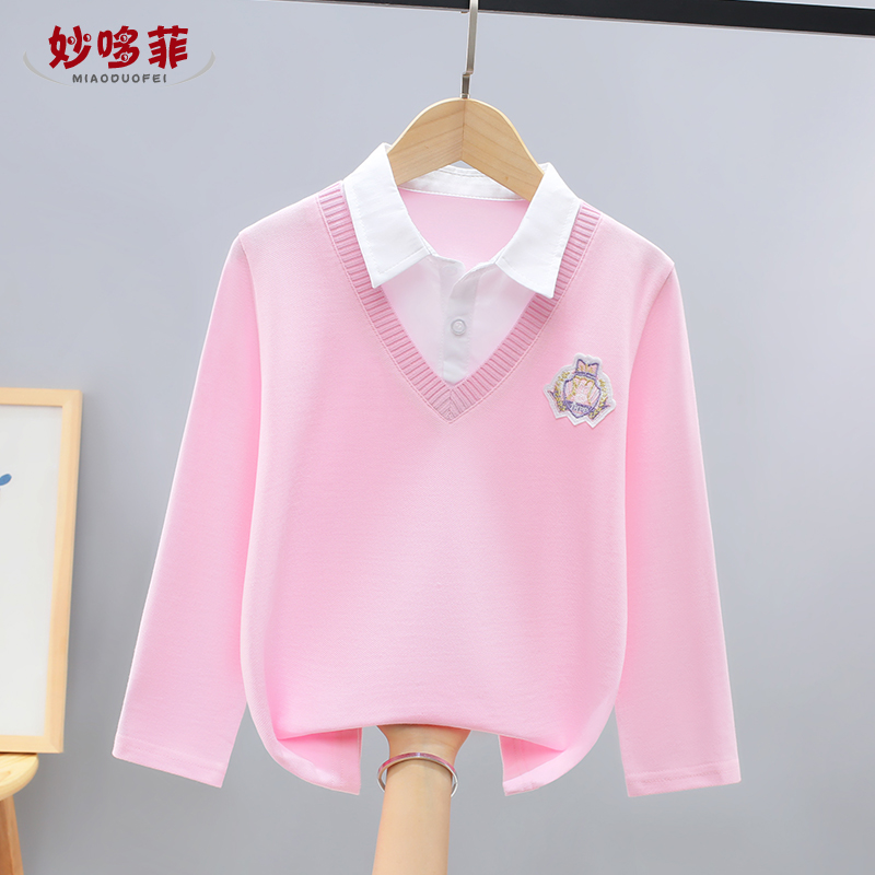 女童纯棉t恤春秋长袖 中大童女孩洋气春秋儿童假两件衣服 2025新款