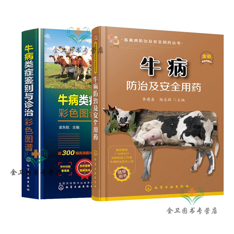 牛病防治及安全用药 牛病类症鉴别与诊治彩色图谱 牛病诊断治疗书籍牛常见传染病规药物准确用法与用量几方指导 全2本