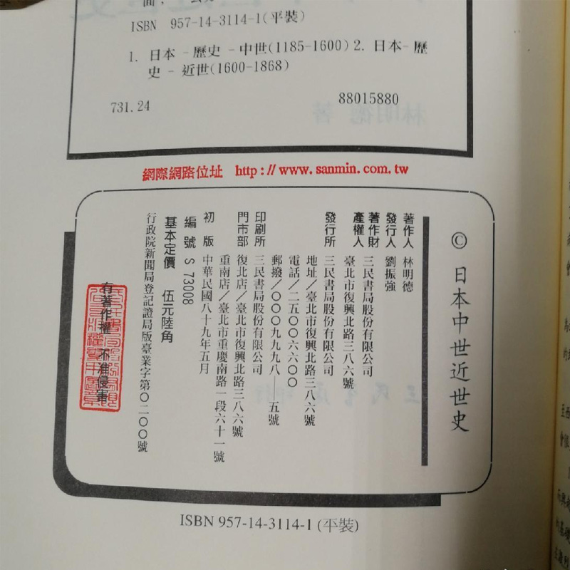 台湾三民版 锁线胶订 林明德 16開 日本中世近世史 现货