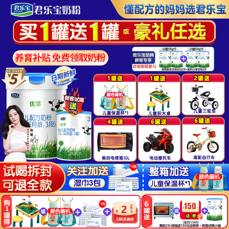 新客送试喝君乐宝优萃有机3段婴幼儿配方牛奶粉12 36个月三段800g