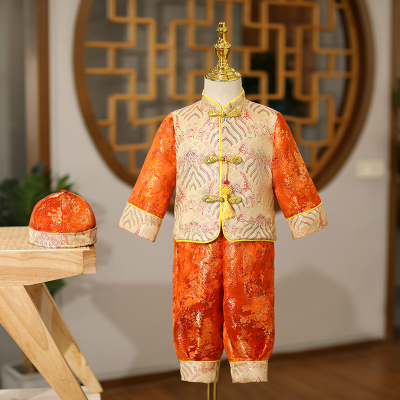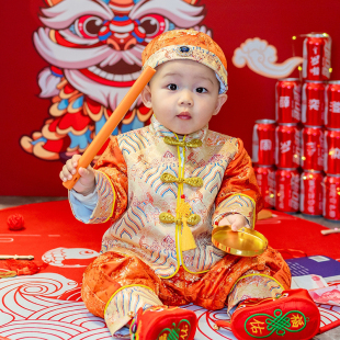 男童中国风男宝宝抓周礼服生日一周岁男宝冠衣 套装 新中式 儿童唐装