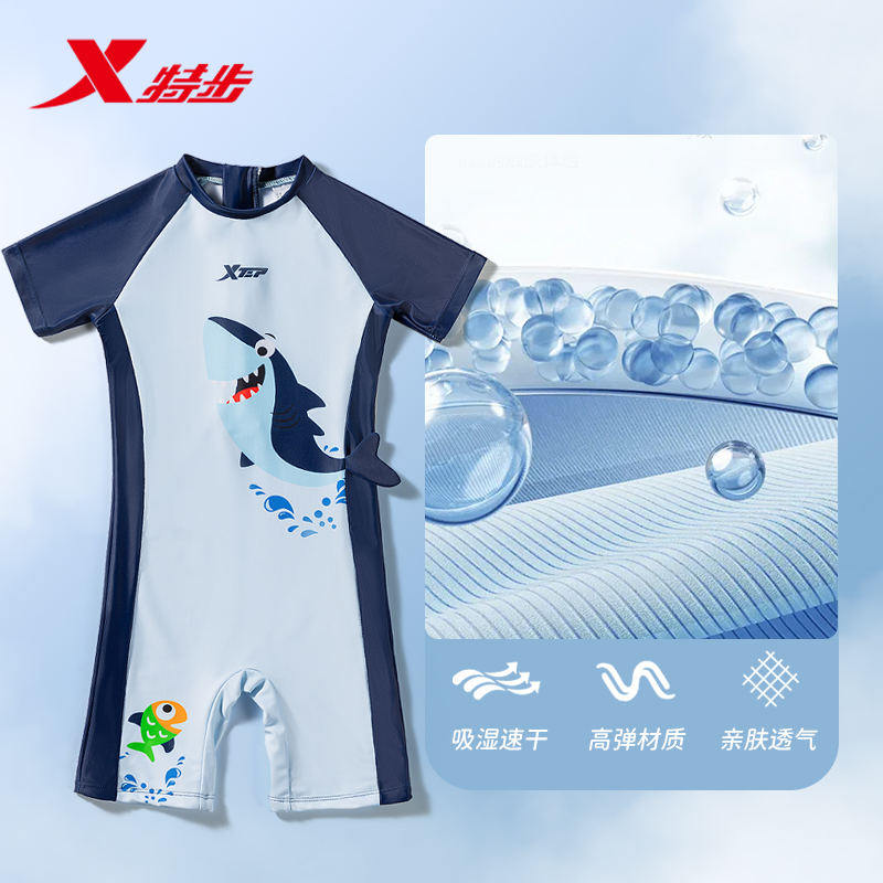 防晒泳装 特步儿童泳衣男童夏小中大童男孩连体游泳衣2025新款 爆款