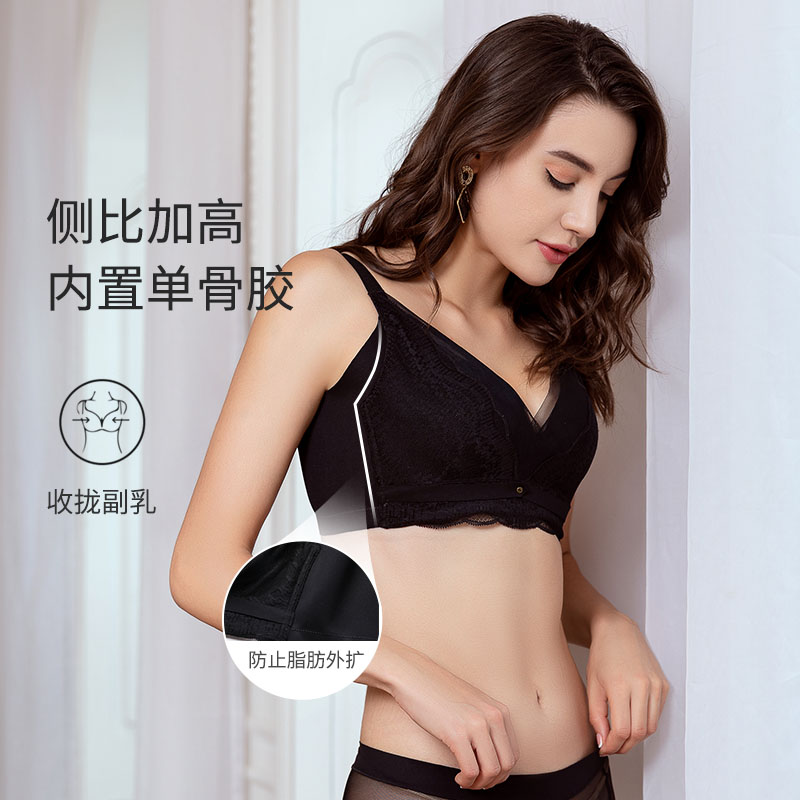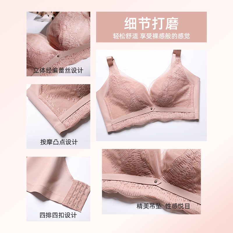 套装 幂姿官方正品 文胸女小胸聚拢无钢圈刺绣内衣收副乳调整型薄款