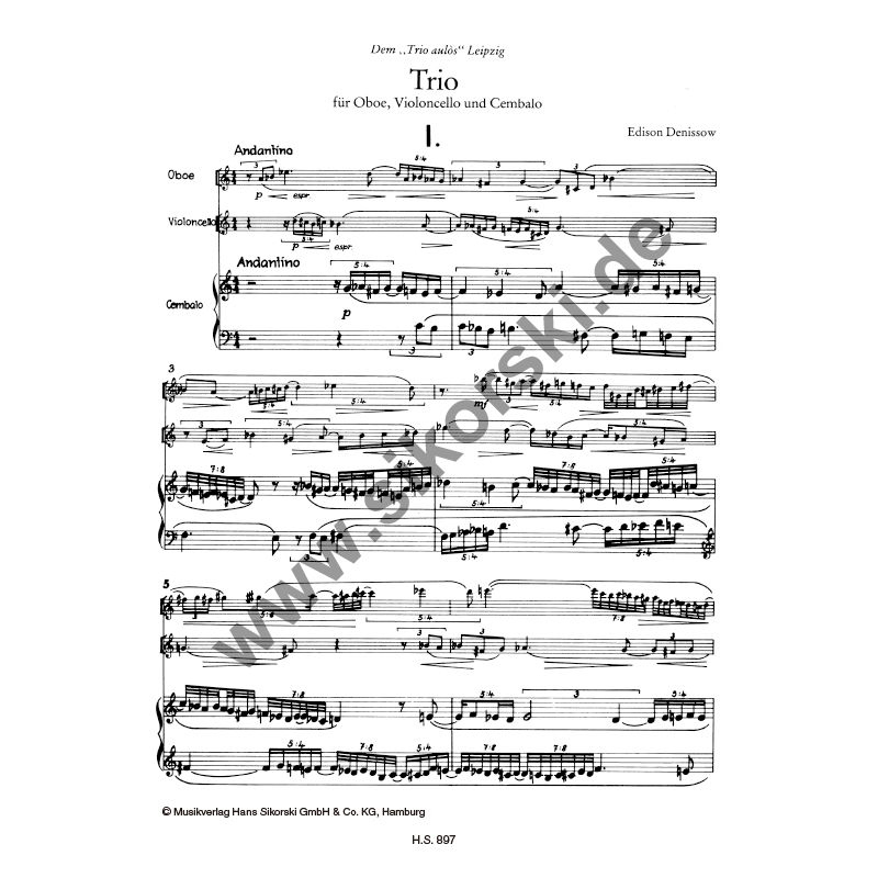 Trio 三重奏 思考斯基乐谱书 德尼索夫 for Cembalo 现代作品系列 Cello 双簧管大提琴和大键琴 SIK0897 分谱 Oboe Denisow