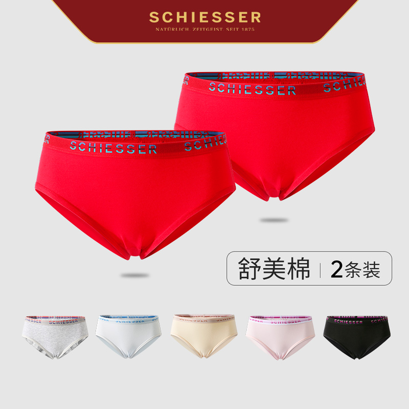 schiesser舒雅内裤 短裤 女士薄款 女三角裤 纯色舒美棉中腰修身 2条装