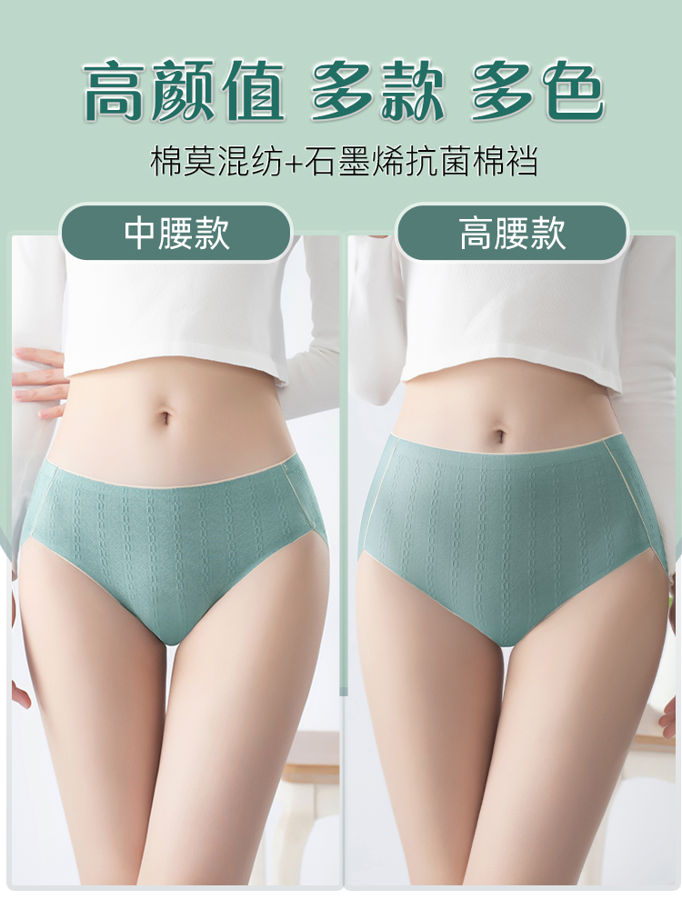 夏季 内裤 女士内裤 胖mm无痕纯棉抗菌档高腰收腹莫代尔棉新款 女大码