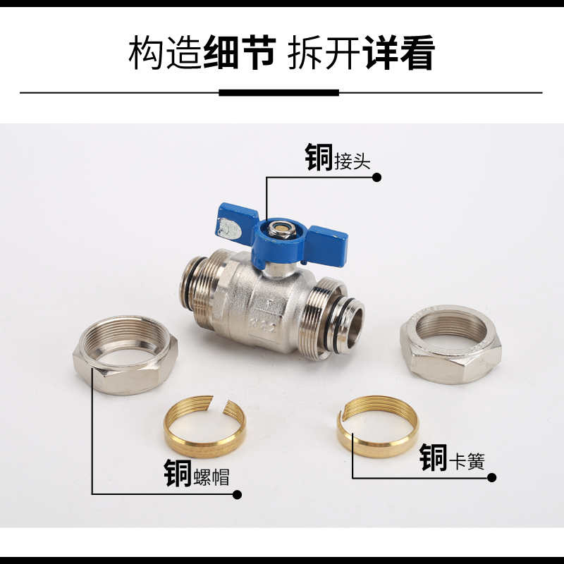 铝塑管止水阀门1216 1620太阳能热水器地暖水管铜球阀4分家用开关