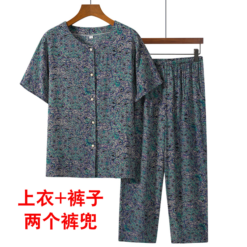 t恤两件套老太太开衫 短袖 老人衣服上衣薄 老年人奶奶套装 妈妈夏装