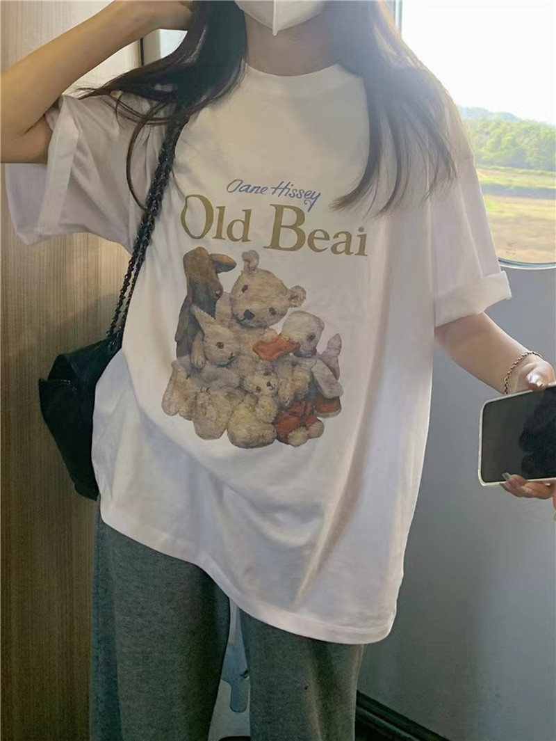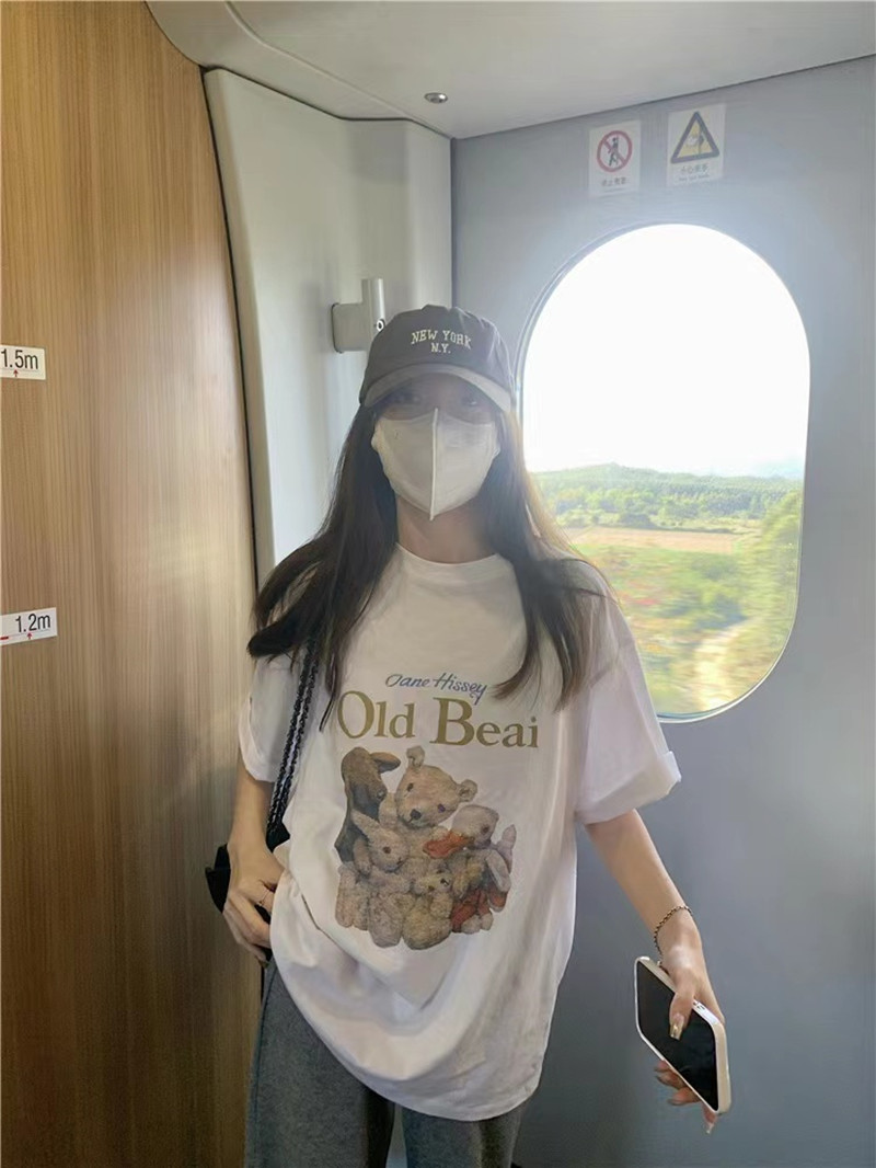 新款 t恤女2022夏季 ins潮牌复古oversize上衣 chic港风短袖 国潮美式