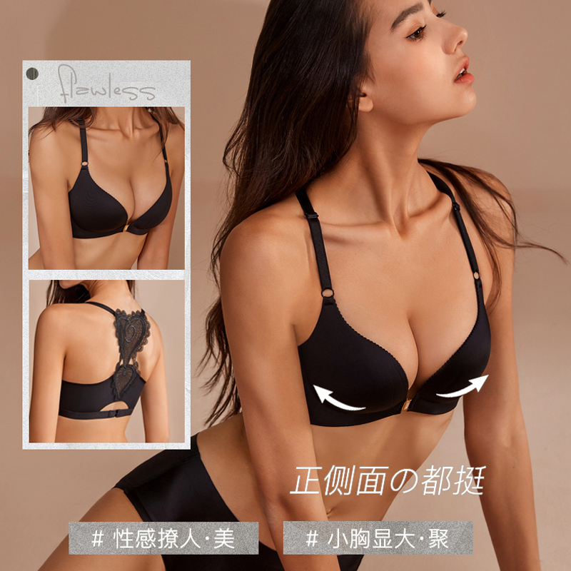 前扣美背无钢圈小胸聚拢文胸无痕内衣女性感胸罩套装 2022新款 夏季