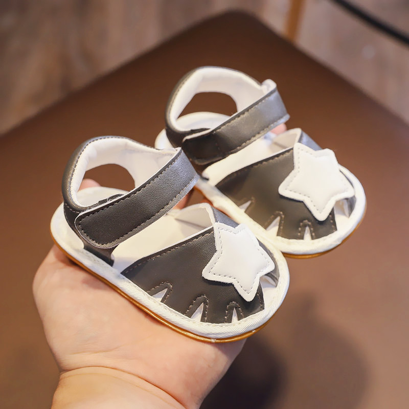 软底防滑小童婴儿步前鞋 牛筋底不掉学步鞋 男宝宝护脚包头凉鞋 夏季