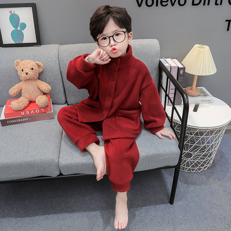 男童奥粒绒睡衣秋冬儿童开衫 冬 加厚保暖分体家居服男童法兰绒套装