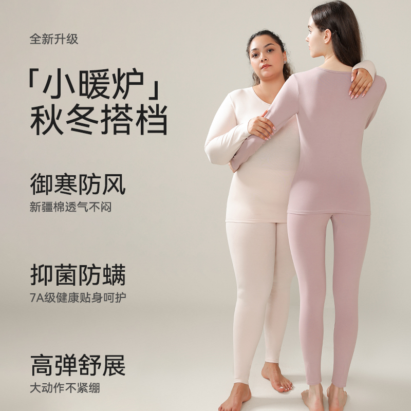 套装 线衣线裤 打底棉毛衫 保暖内衣女秋冬季 加肥加大码 纯棉秋衣秋裤