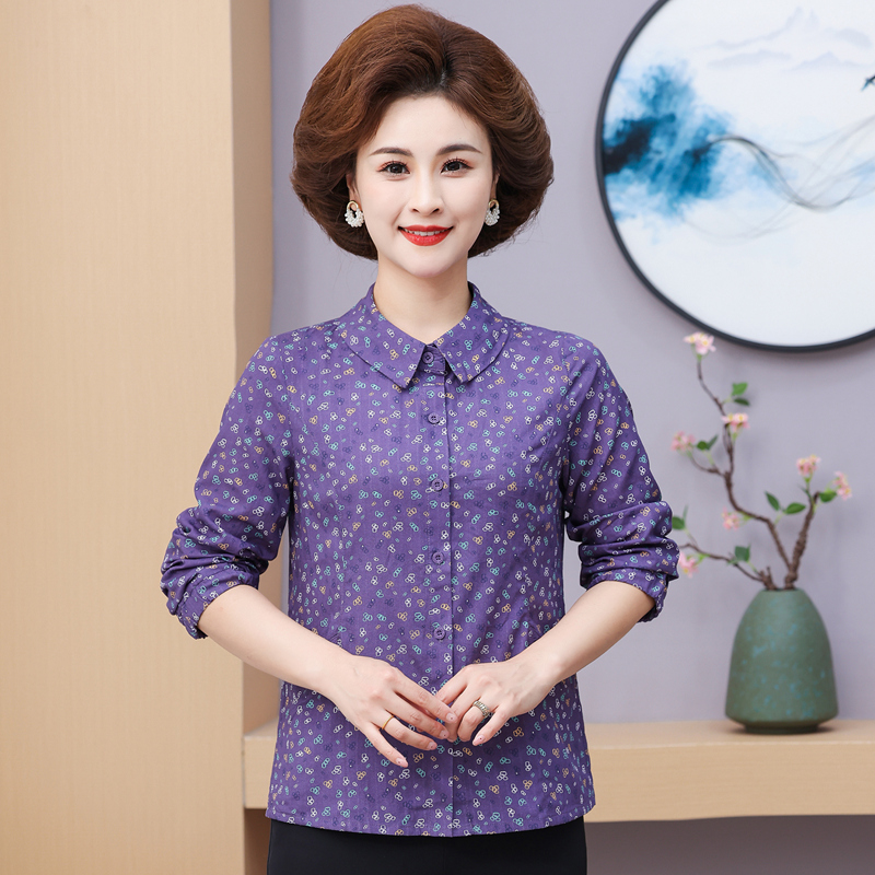 花色长袖 妈妈款 衬衫 中老年女装 上衣 2025春秋季 宽松中老年女装 新品