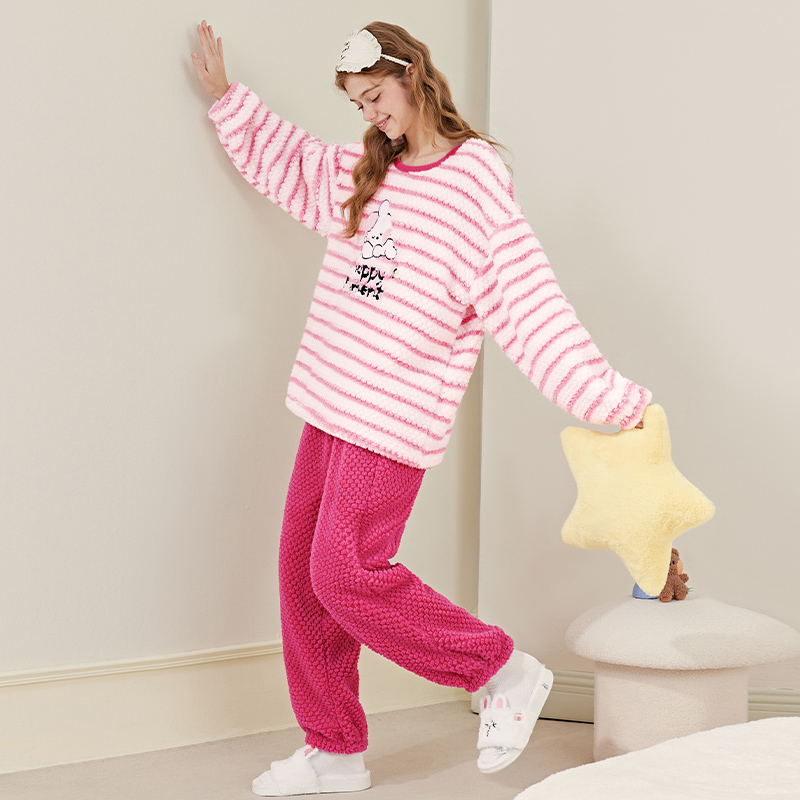 半边绒睡衣女秋冬保暖可爱卡通家居服套装 Gukoo 果壳新款