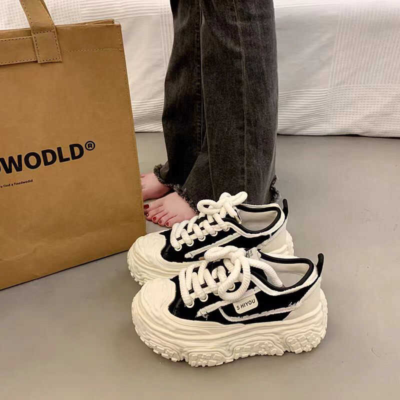 增高帮老爹鞋 帆布鞋 松糕厚底半拖爆款 秋冬小白鞋 麦昆百 女2025新款