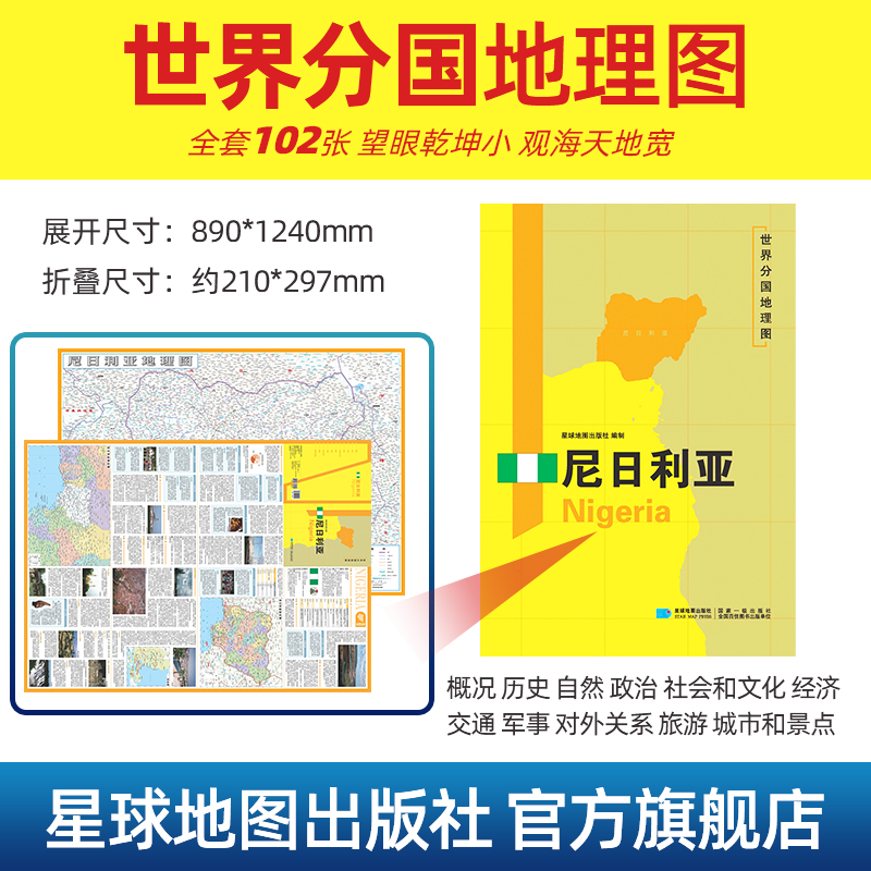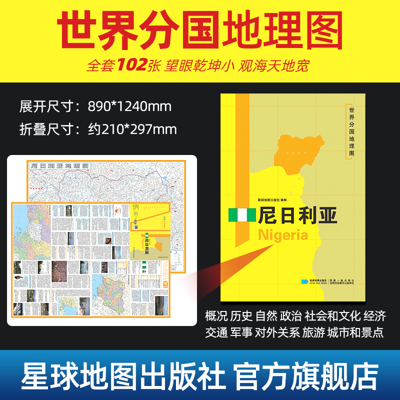 尼日利亚地图1.25 正版 0.9米世界分国地理图折叠套封 社 书籍 星球地图出版 当当网