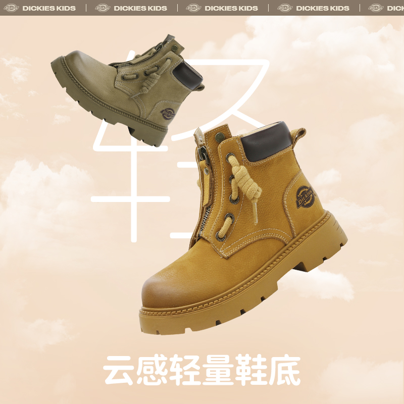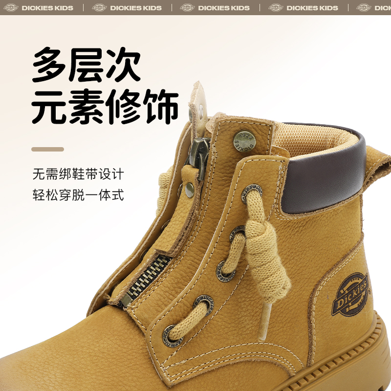 Dickies男童马丁靴2025新款 防滑短潮靴女童洋气真皮靴 英伦风时尚