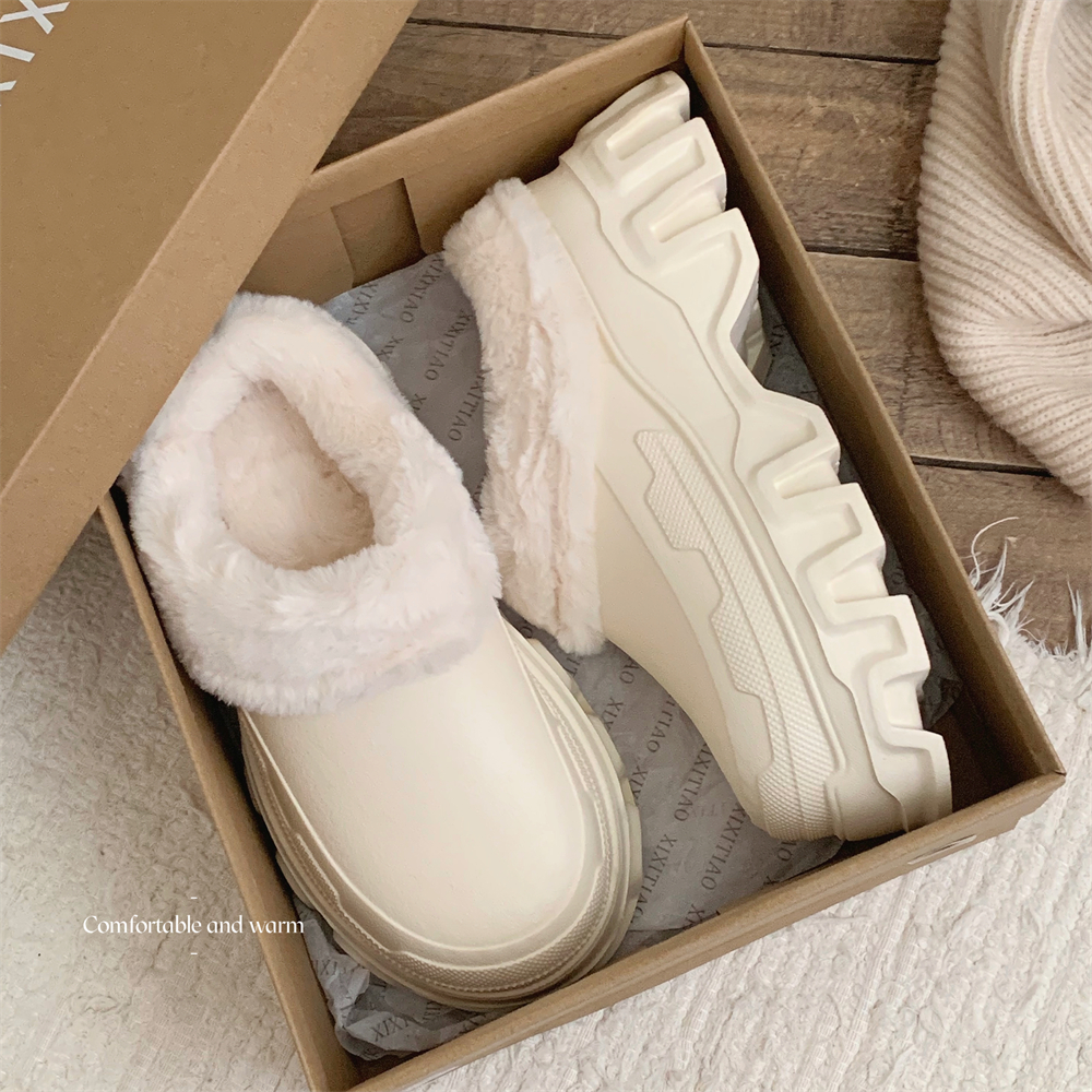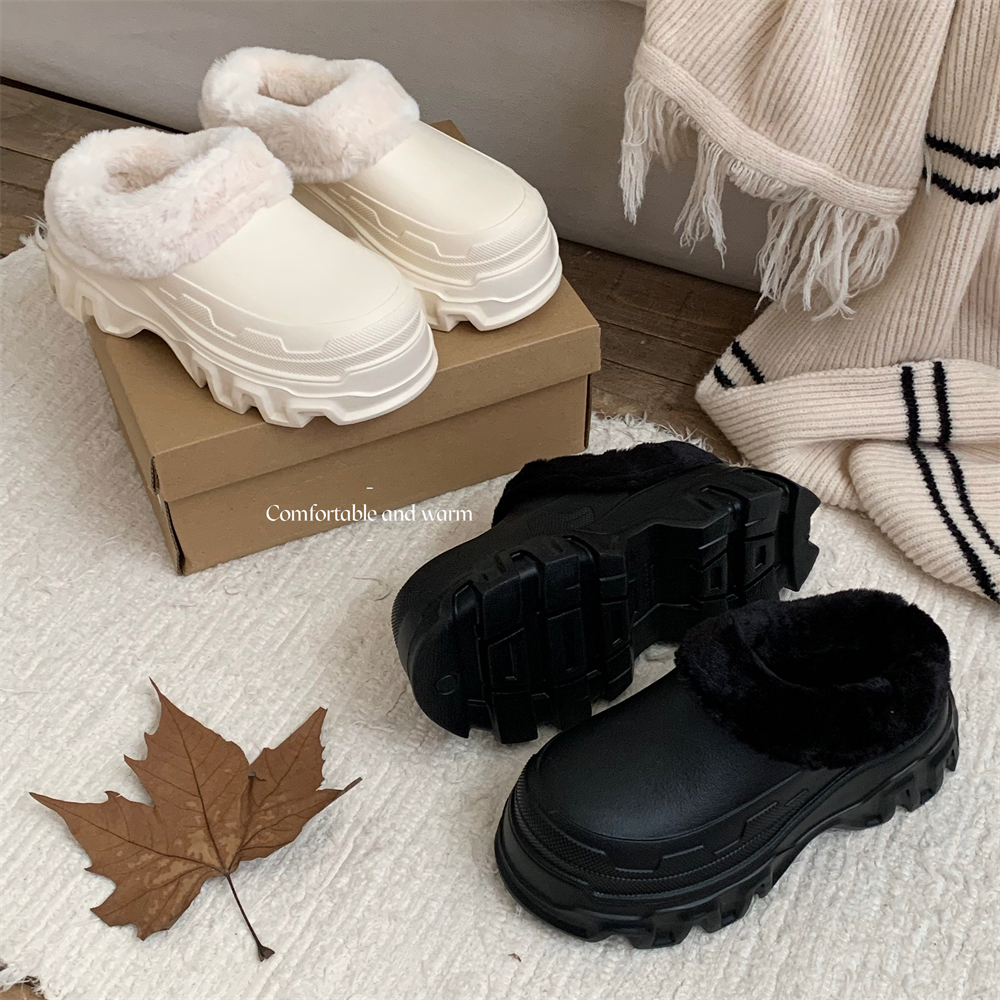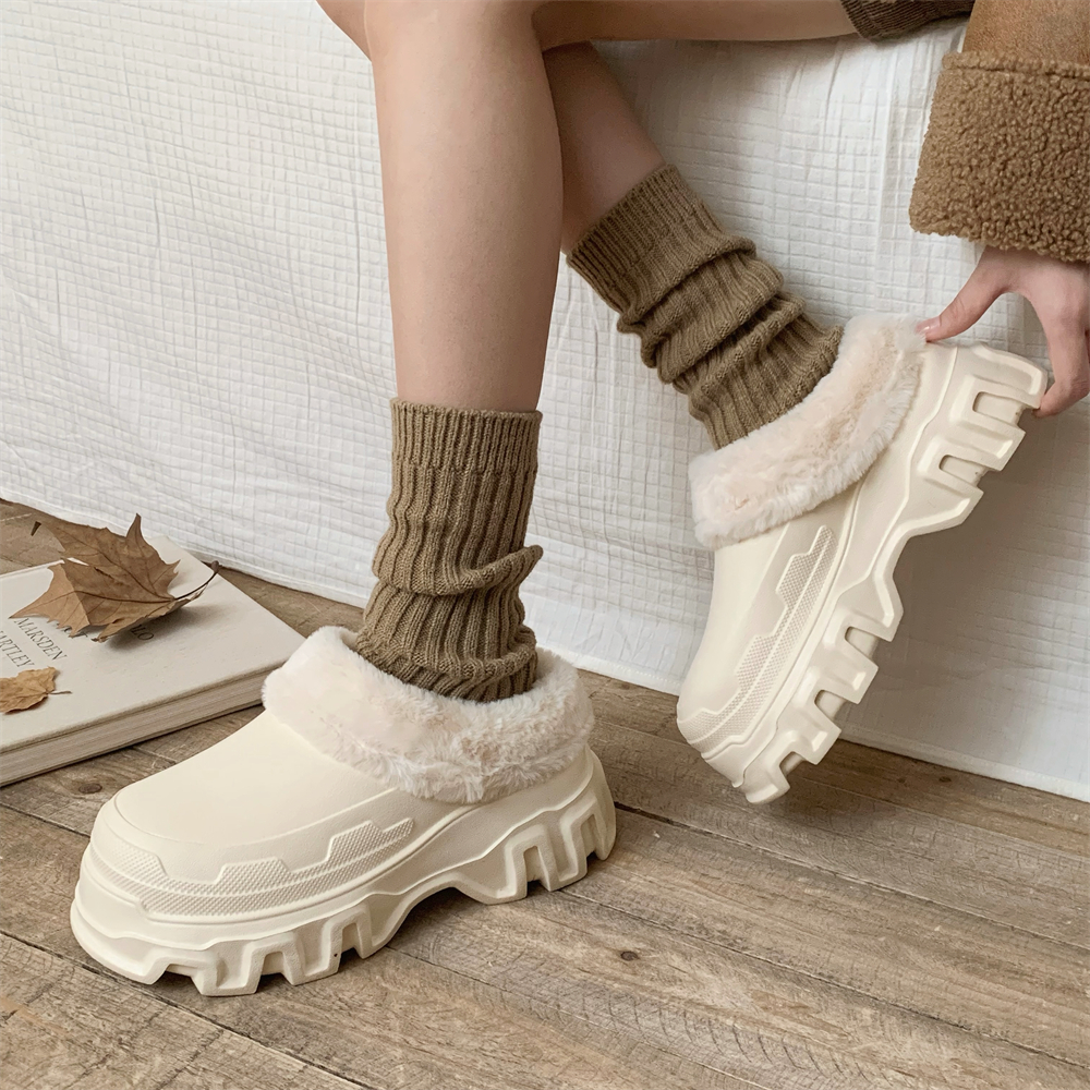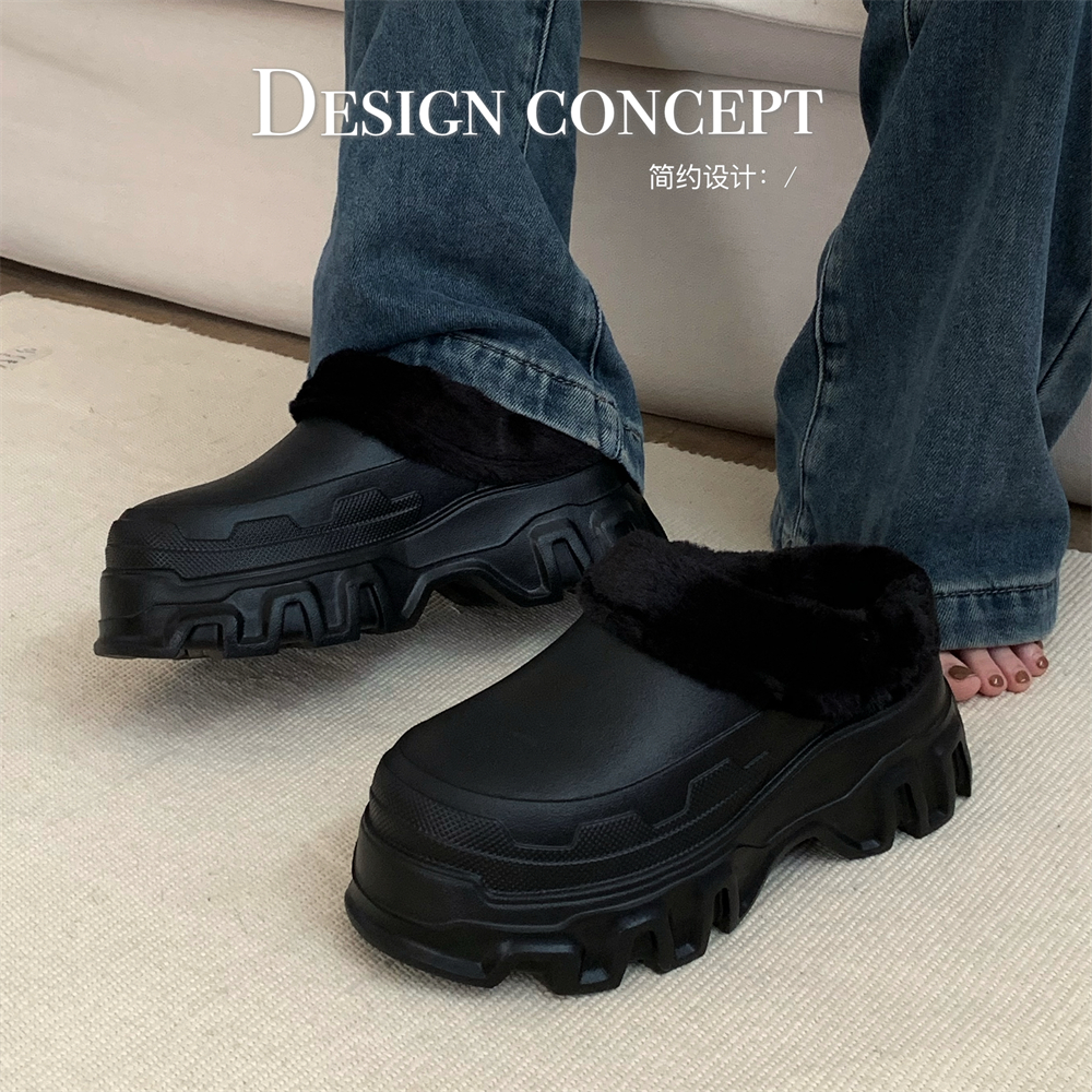 增高厚底保暖加绒街头棉拖鞋 细细条懒人冬季 韩版 包头棉鞋 女 时尚