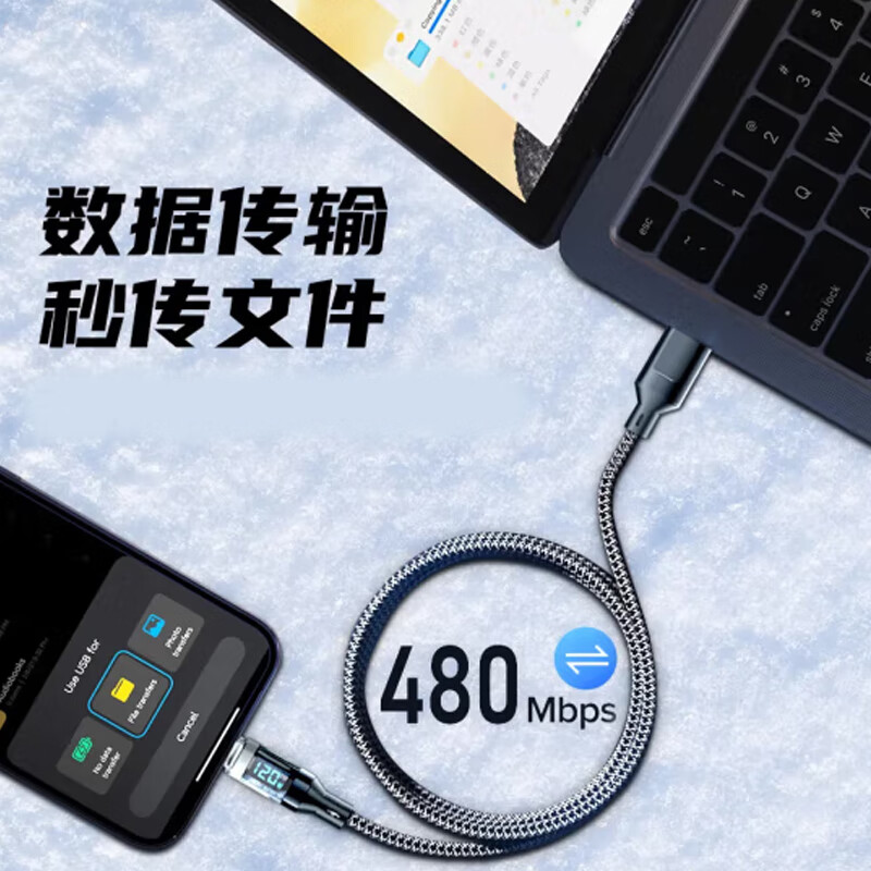 30小米苹果15双头tpyec圆头冲电线 昊微透明数显120W超级快充Type c数据线6A充电线适用华为mate60荣耀X50