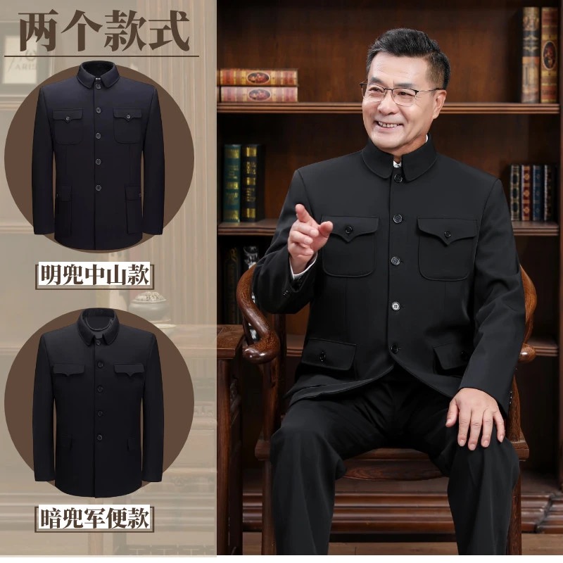 男装 高档中山装 老人民国爷中山服爷爷春秋装 中老年爸爸冬装 男套装