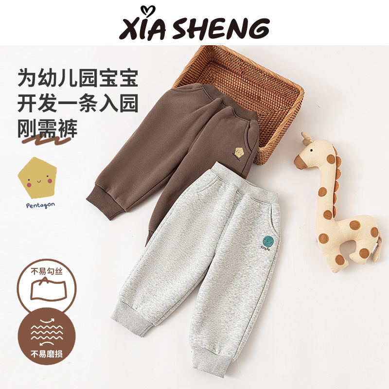 新品 夏生幼儿园百搭省心裤 儿童冬装 子羊羔绒卫裤 男女童加绒保暖裤