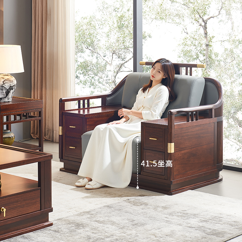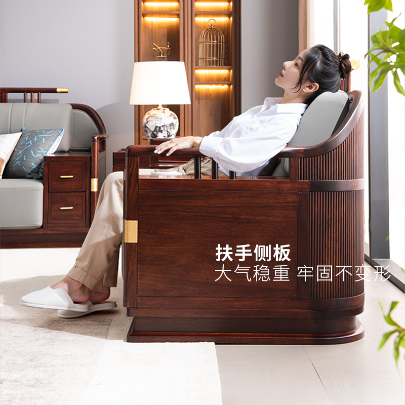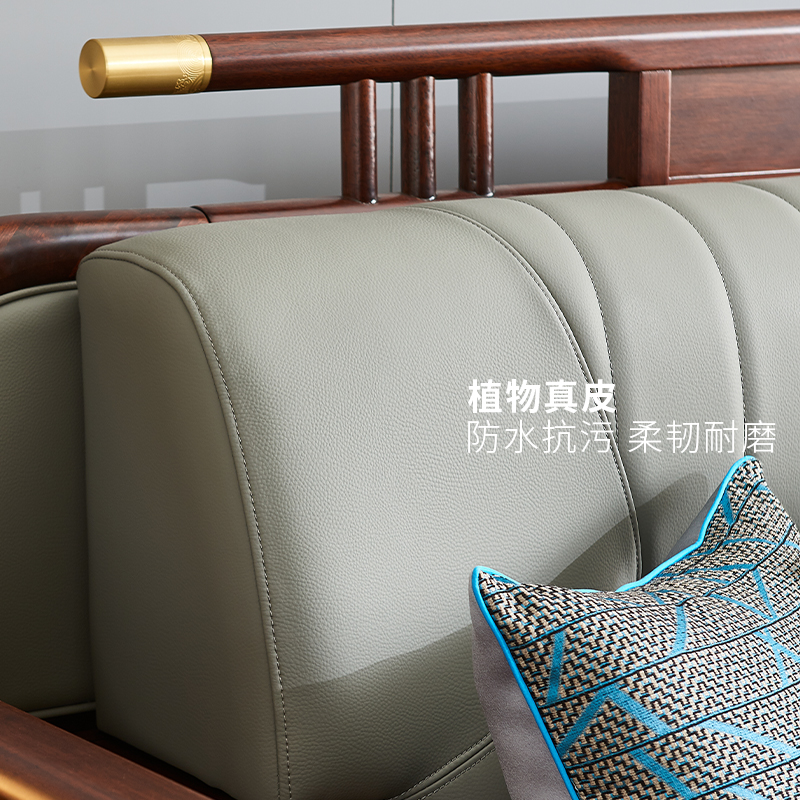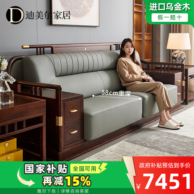 政府补贴乌金木实木沙发别墅客厅现代高端新中式 家具组合真皮沙发