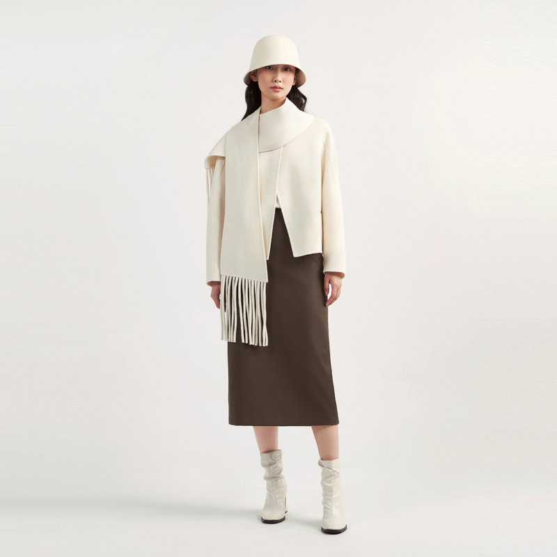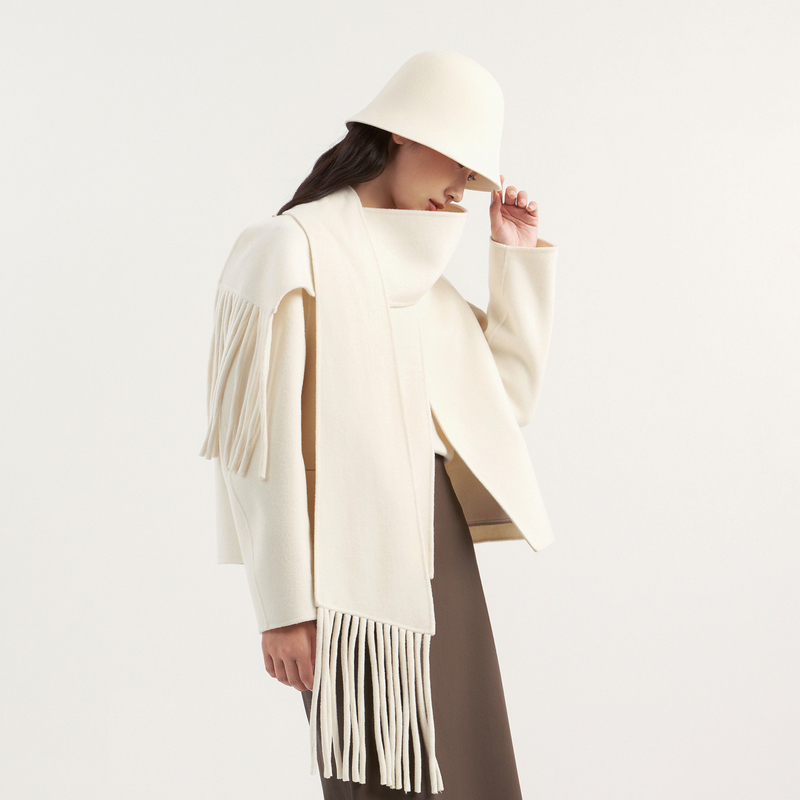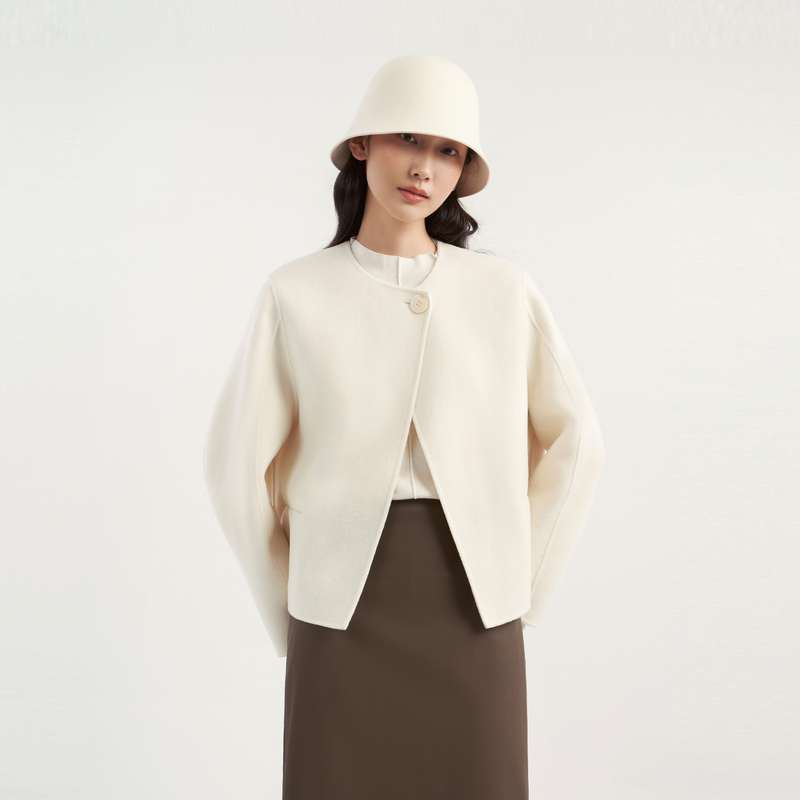 易菲气质小香风斜门襟宽松短款 Yifini 双面呢外套女 专柜同款