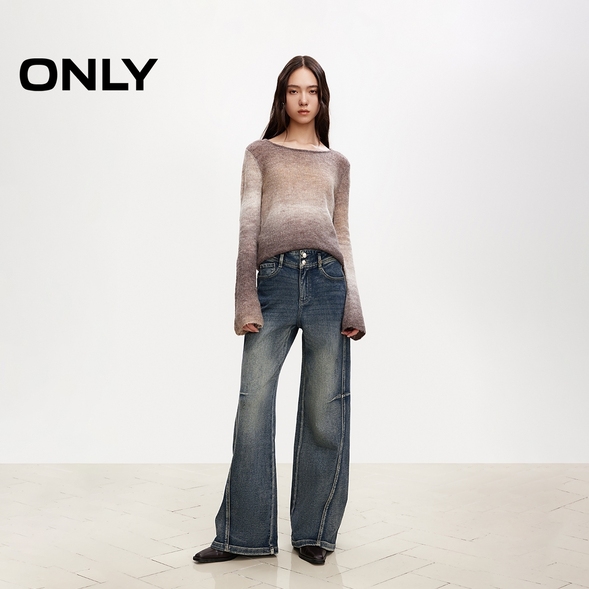 新款 牛仔裤 吸睛香蕉裤 长裤 女 解构裁剪宽松遮肉阔腿裤 ONLY2025冬季