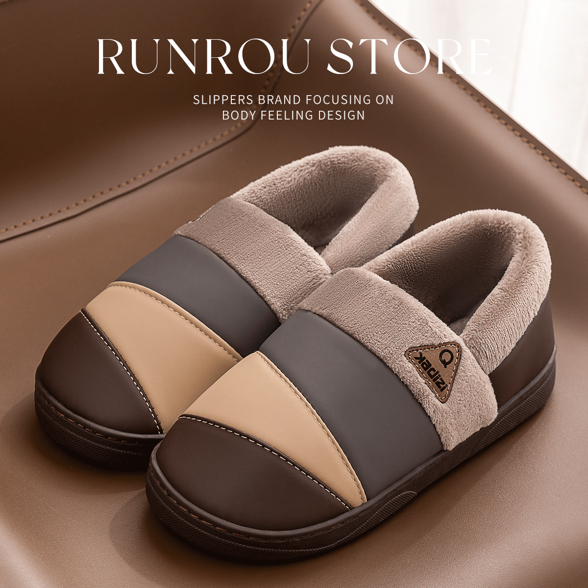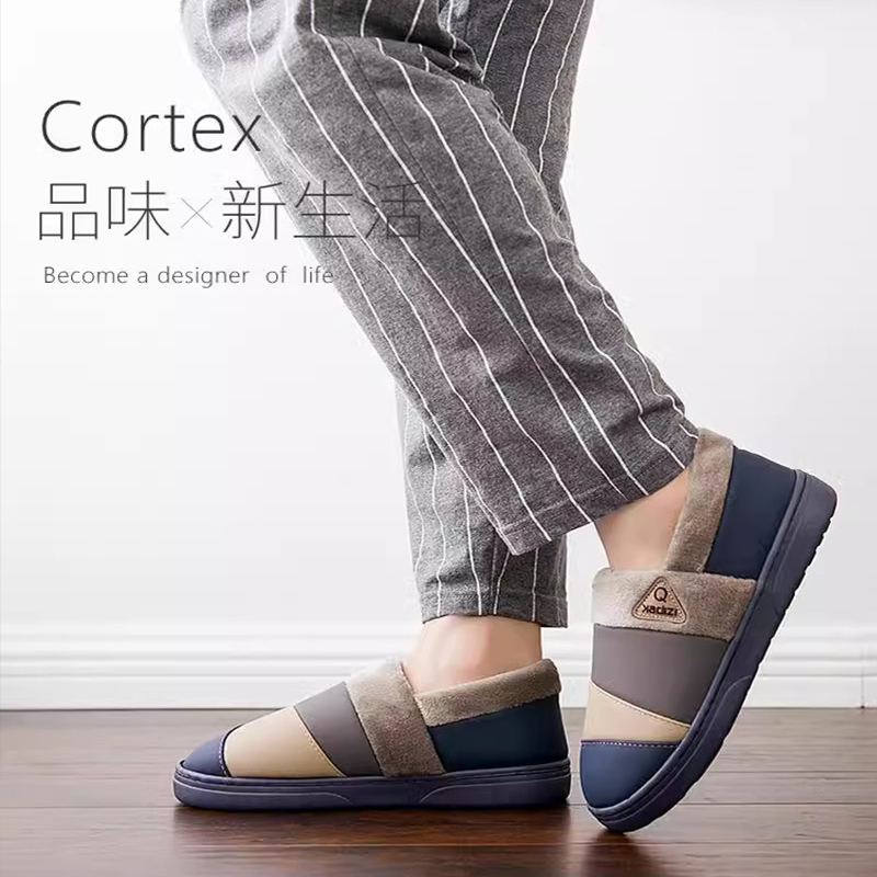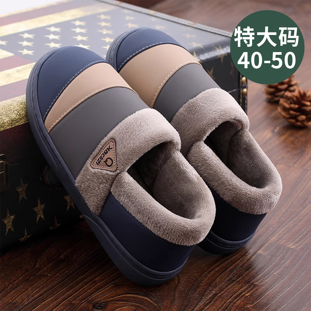 秋冬包跟加绒加厚保暖家居室内防水Pu棉鞋 大码 男冬外穿 棉拖鞋 男士