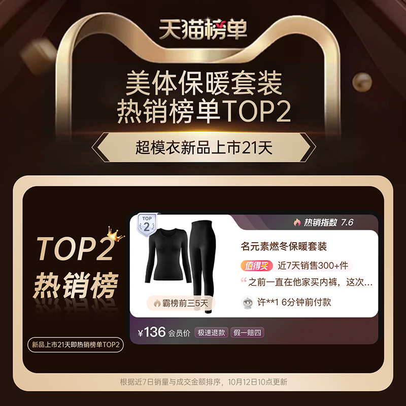 秋冬塑形秋衣秋裤 名元 保暖内衣女套装 燃冬超模衣 美体衣 素暖π