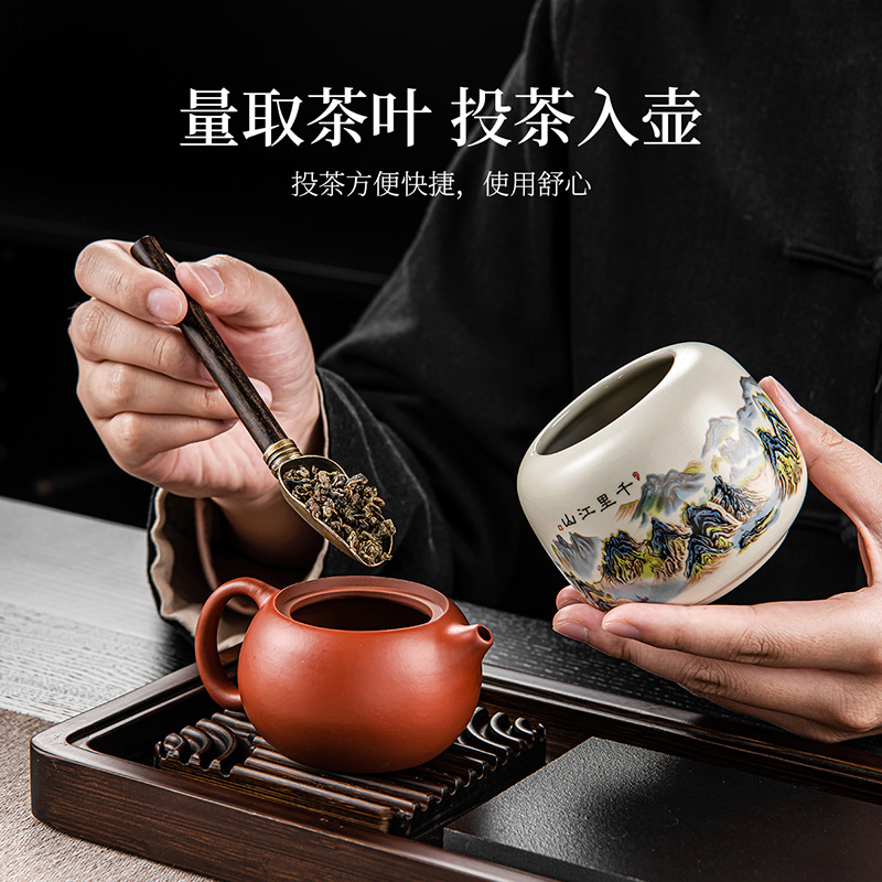 茶具茶道六君子套装 家用汝窑配件杯叉茶刮泡茶工具茶勺养壶笔剪刀
