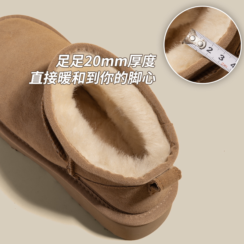 加绒加厚底真皮棉鞋 冬季 子 2025新款 8CM内增高皮毛一体雪地靴女款
