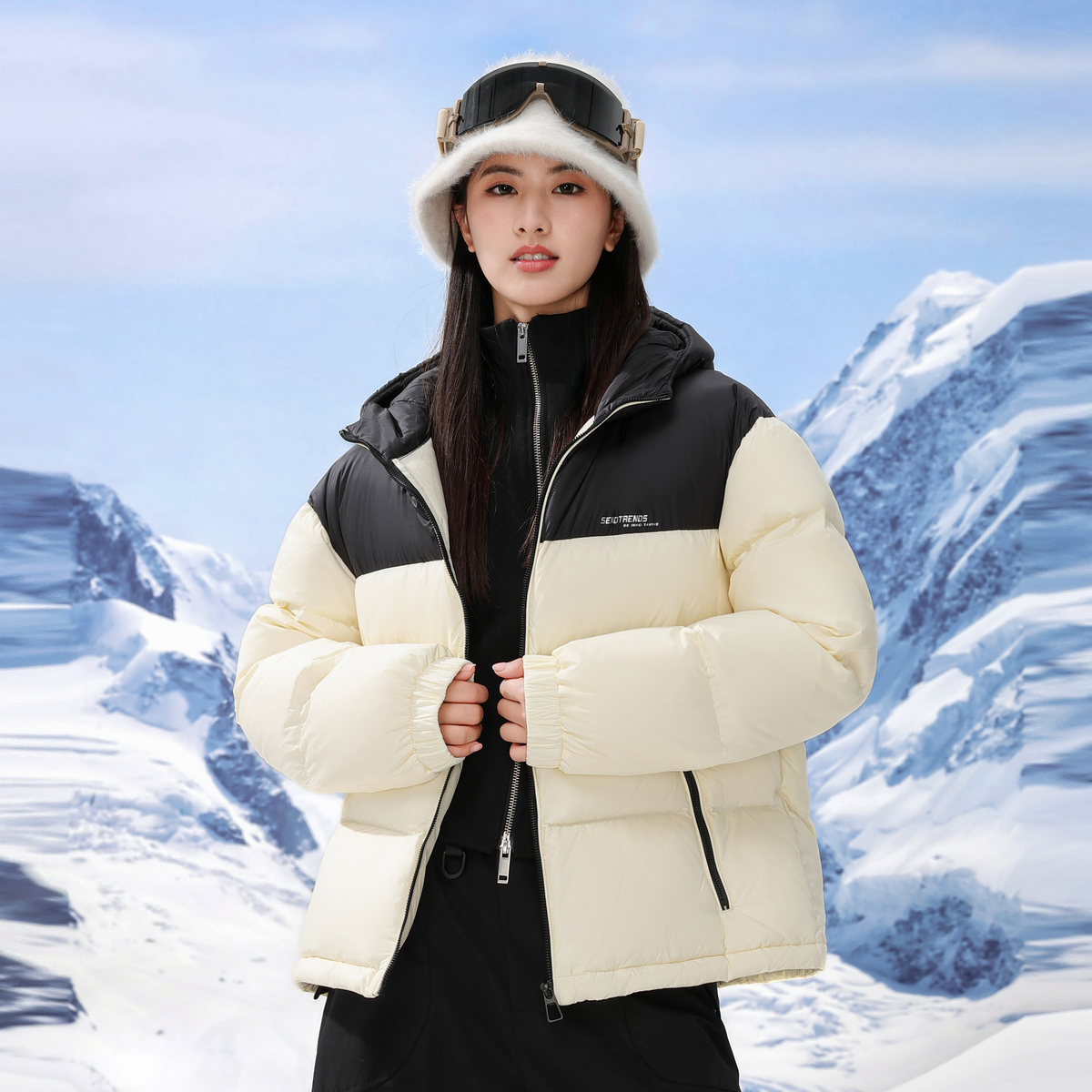 2024新款 三防宽松冬季 保暖毛领连帽外套 森马羽绒服女长款 陈都灵