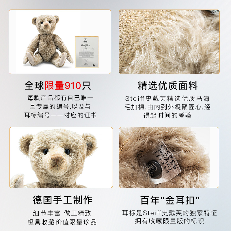 德国steiff史戴芙收藏限量版 复刻1910年泰迪熊毛绒公仔玩具生日礼